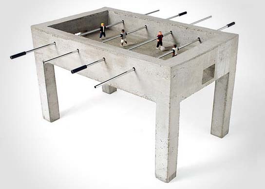 i am not a huge fan of soccer but for some reasons, foosball never fails to attract me. it is unexplainably addictive and i would think, it is a game that will never go out of style. that said, it is only natural that a foosball table cast in concrete that reminisces of a street soccer game has my attention in an instant. instead of the usual wood or MDF board materials, the Panna Foosball Table is cast in concrete and has a 2-a-side set-up.