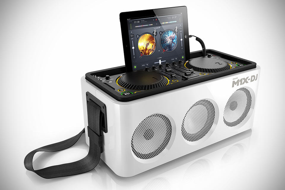 it used to be, a party at the beach or anywhere outside of your pad can be achieved by a boombox over your shoulder and a couple of mix tapes. that was when Flash Dance was a hit and before college kids started huddling into giant speakers-rigged house. well, it looks like the tide is going to change again, but this time boombox and mix tapes aren’t in the equation – in their place would be this sleek Philips x Armin van Buuren M1X-DJ Sound System introduced at the recent IFA. the M1X-DJ is a DJ controller and a sound system rolled into one, offering features like Apple Lightning connector, Bluetooth connectivity, supports for Alogriddim djay 2 app, 80 watts of power output, and most importantly, an integrated DJ controller for mixing and scratching your mixes with two professional-grade platters, complete with cross faders and controls.