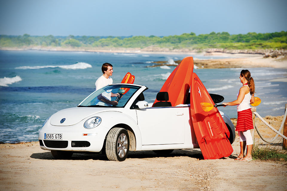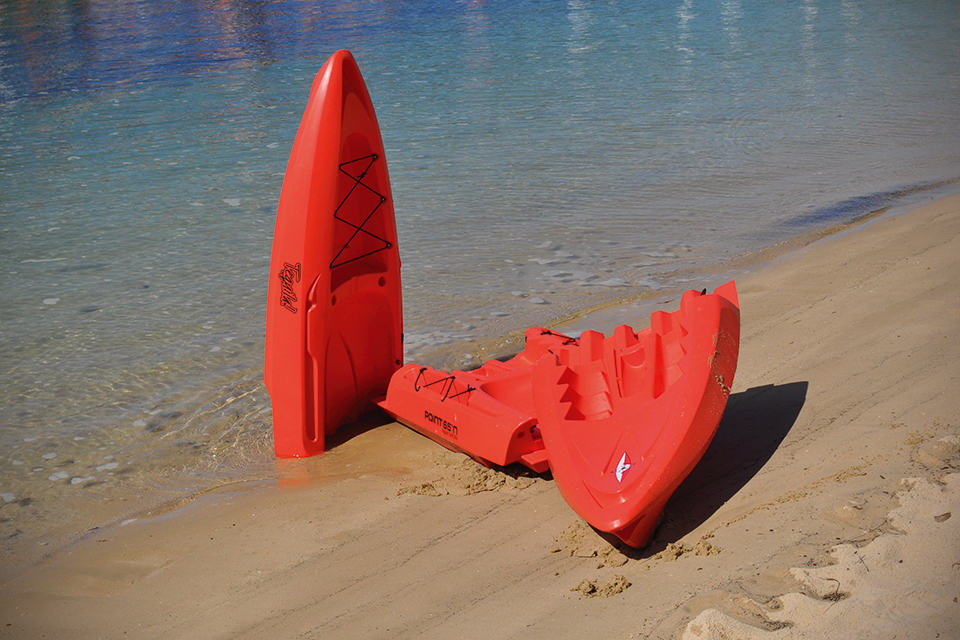 you don’t need a roof rack for your car to get into the sport of kayaking with the Point 65N Modular Kayaks. as the name the product name implies, these boats are of modular design which simply means each watercraft can be broken down into modules and thrown into the back of your vehicle or truck (or even a VW Beetle Cabriolet as witnessed in the photo below) for transportation. no more straining yourself to heave the bulk off the roof and it certainly makes one-man handling of the boat a much easier task. there are no tools involved – all it takes is snapping the pieces together and you are pretty much all set. with the modular design, the kayak can be transformed from a solo to tandem kayak (or even a triple for some models) by introducing additional module(s).