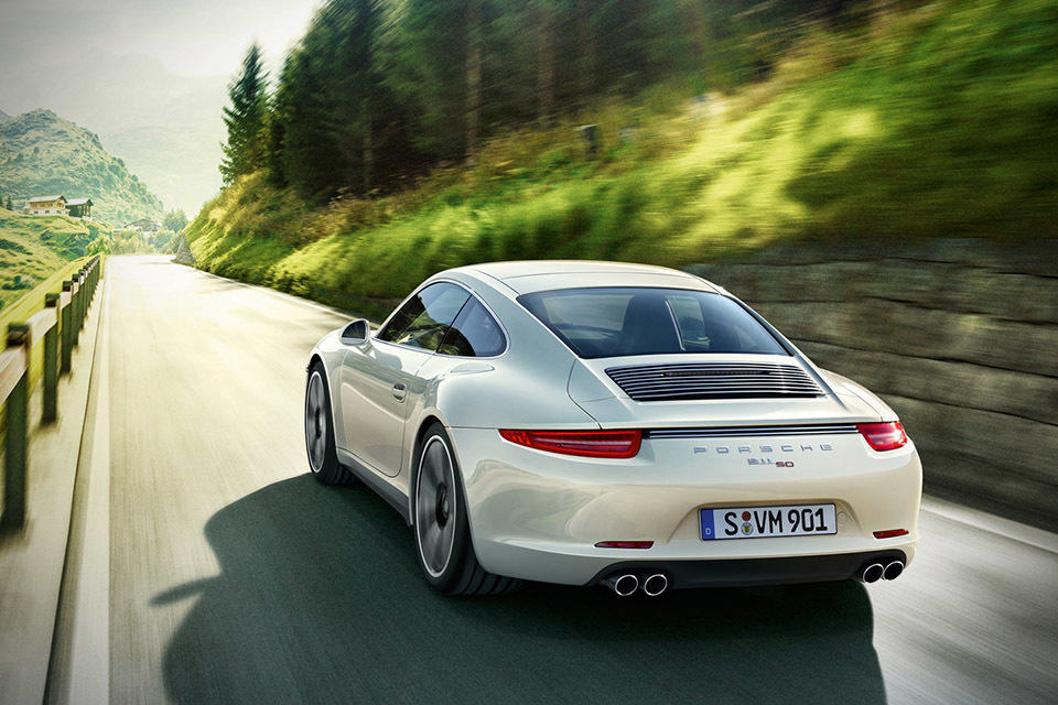 unlike Lamborghini who marked its 50th years in the business with an exceedingly exotic concept, Porsche chose to celebrate the 50 years of its iconic model 911 with a more earthly ride – the Porsche 911 50th Anniversary Edition. expect no overly exotic materials or extreme styling on this world’s most recognizable ride, instead you will find, in the rightful place (which is in its trunk, naturally), a 3.8-liter boxer engine as found on the Carrera S with Powerkit package upgrade, giving you 430 horses of pure rear wheel drive fun. performance speaks, this wide-bodied coupe gets from zero to 60 mph in just 4.2 seconds when paired with a seven-speed manual transmission, or 3.8 with the optional dual-clutch PDK.