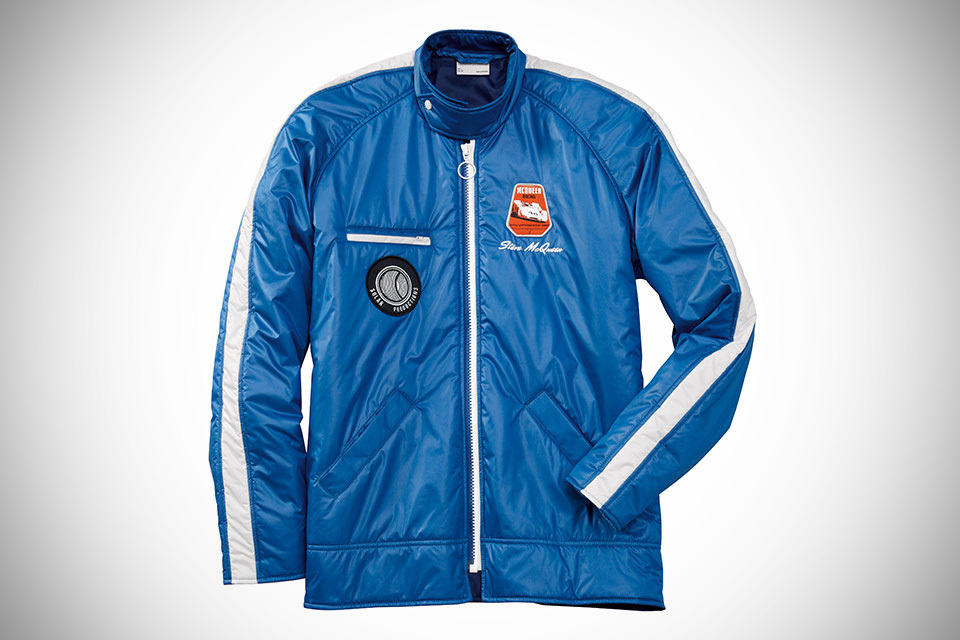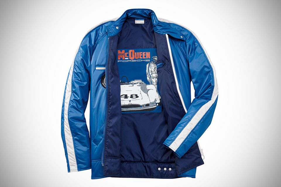though Steve McQueen was known for his acting, he was equally celebrated for his achievements in the motor racing arena and this commemorative outwear, the Porsche Steve McQueen Racing Jacket is the perfect reflection of the King of Cool’s status. paying homage to the late McQueen, the jacket bears an unmistakable 70s styling and features an inner lining that displays an iconic artwork of McQueen standing besides a Porsche 908, a ride which he drove in and nearly won the 12 Hours of Sebring. made of 100% polyester, the outside in a lighter shade of blue, features Porsche embroidery on the back and a Steve McQueen badge in contrasting orange-red at the front and the jacket also sports a couple of very distinct 70s design styling: white stripes spanning the sleeves and a snap-closure waists adjustment. basically, it just look totally awesome and cool like the man himself.