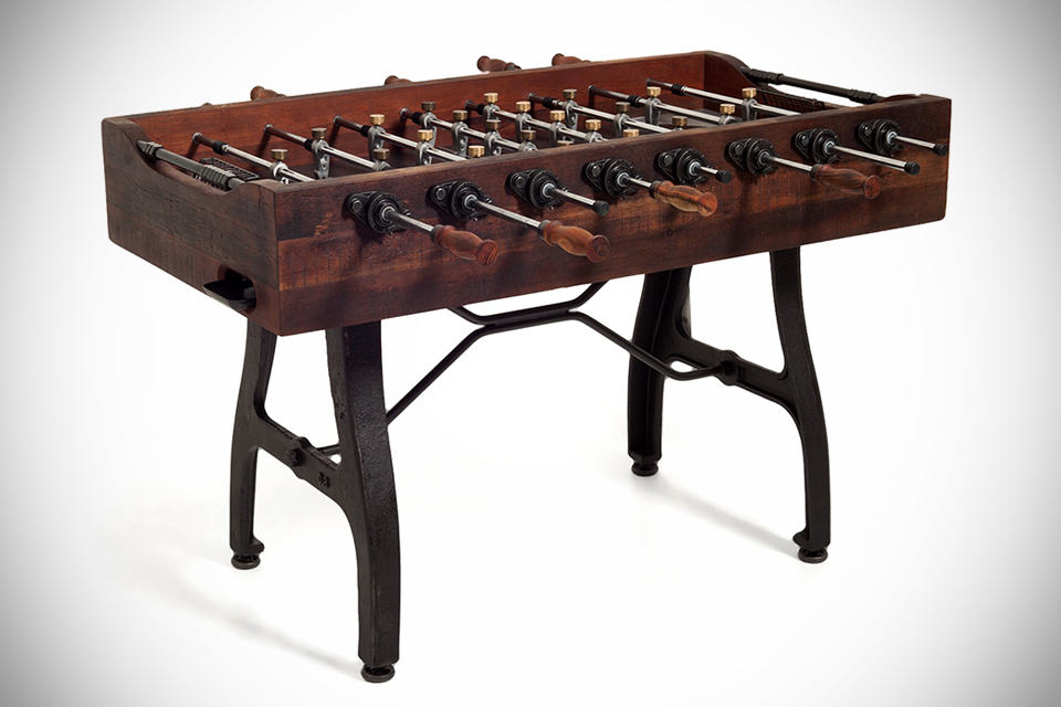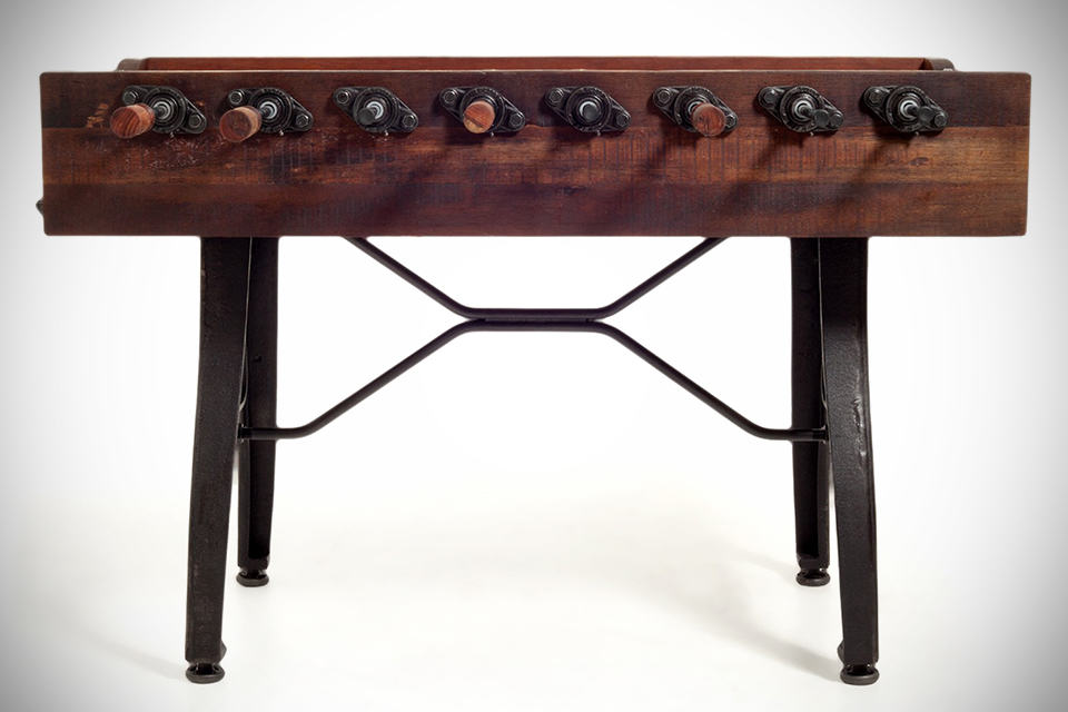 the next time when you are tempted to pick up another electronic gadget to fulfill your leisure and/or entertainment need, why not stop and opt for a less ‘harmful’ alternative like the old school foosball table? seriously, not only you save yourself from dumping an electronic waste to the landfill (well, eventually), but you are also saving some of the precious and historic materials from ending up in the landfill if you pick up this Post Foosball Table. one stone kill two birds, i’d say and it comes with a fringe benefit too: it looks pretty damn gorgeous and i dare say unlike any foosball table we have seen to date. the Post Foosball Table is a one-of-the-kind foosball table created by Vietnam-based Post and is handcrafted from reclaimed hardwood and solid cast iron that result in an irresistible rustic charm. if you asked us, we’d say this makes a great piece of heirloom furniture.