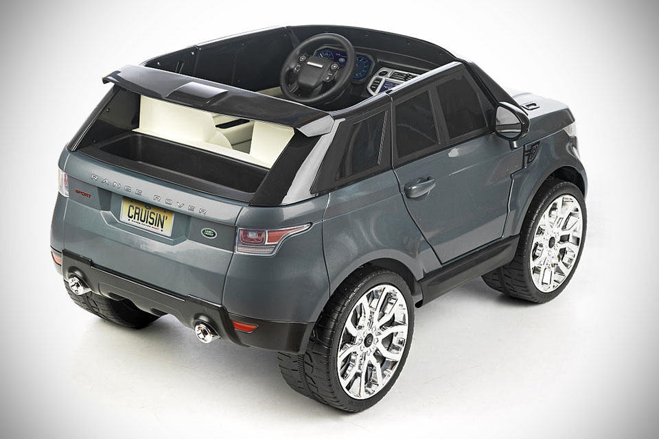 how to prove that you want the best for your kids and you are not a selfish grown up? get your kids the Range Rover Sport 12V Ride-on Toy, that’s how. the Range Rover Sport 12-Volt Ride-on Toy is a ride-on toy modeled after the Land Rover SUV introduced earlier this year and we have to say it looks pretty damn cool. it may not be proportional correct (but that’s the beauty of it, isn’t it?), it sure looks every bit of a Range Rover, except that the 12V there ain’t no 12 valve, but a 12-volt electric motor (your kids will be greener than you!) that will drive this baby Range Rover up to 4.5 mph (7 km/h). the vehicle seats two (up to 130 lbs or 54 kg total maximum weight) and is similarly well-appointed inside and out, starting with an interior styling like its road going counterpart, complete with an “infortainment” dash with functional audio jack for connecting your kids’ iPod or MP3 player for playing back music via the Range Rover’s built-in speaker system.