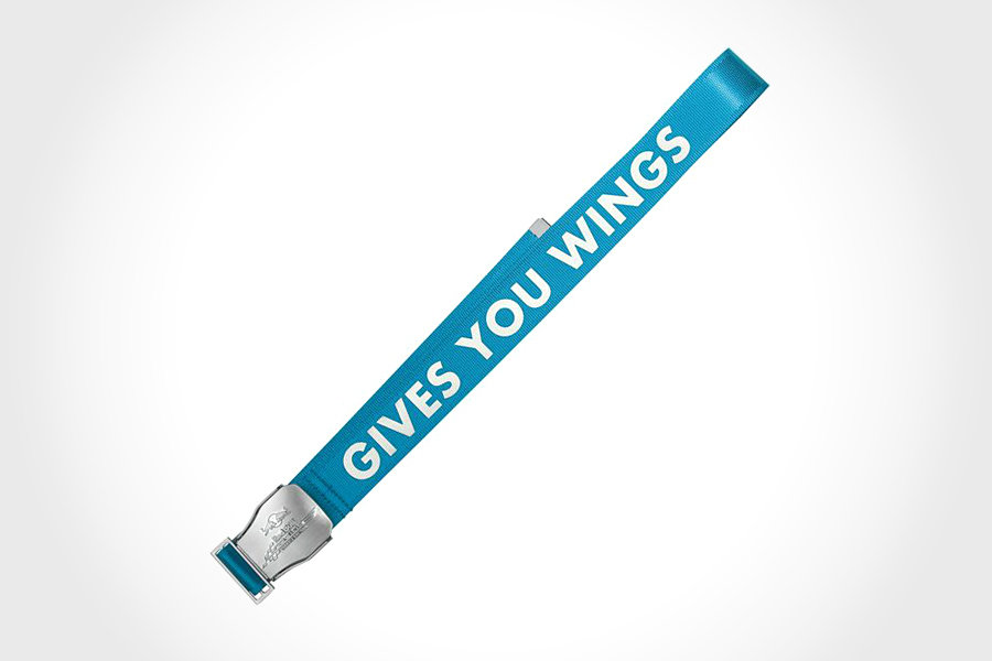 we usually leave our tees untucked mainly because of two things: we do not have a decent waist line to show and we do not own any belt (and belt buckle) that’s worthy of exposing our less-than-ideal mid-waist anatomy. yes. all this sitting in front of the computer posting away while munching on snacks have somewhat enlarge our waist line a little. however, we might consider going on the tuck-in our tees ritual on daily basis if we have a belt like the Red Bull Racing 2012 Race Belt. this official Red Bull Racing merchandize sports an aviation theme with a belt buckle fashioned after an airplane’s seatbelt buckle and features an eye-catching ice blue belt decorated with the brand’s slogan “Gives You Wings”. though, it is probable that such a striking belt would inevitably draws everyone’s attention to our larger-than-usual waist but then again, it is also possible that they would be more attracted to this novelly awesome belt. the Red Bull Racing 2012 Race Belt can be yours for £26 a piece (about US$41), available from the official F1 online store with shipment expected to be sometime after mid-April – this year, of course. hit the jump for a couple of larger views.