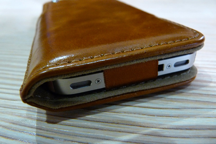 ok, just managed to get hold of a SwitchEasy Duo iPhone case for iPhone 4S/4. aesthetically, it is pleasing to look at and feels a little on the classy side of things. crafted from genuine leather (though no mention of what kind of leather) for the exterior and the interior lined with micro-fiber. SwitchEasy said that the micro-fiber not gives the phone the soft protection but it will also clean your phone’s screen as you insert and retrieve it from the case. trust me, it doesn’t. perhaps, it is true for dust but fingerprints and smudges still remains after a lengthy test. this case was tested with an iPhone 4 with Gelaskins applied and it still fit quite well but short of being snug. the Duo has an innovative way to insert your iPhone: user can either slot in from either the top or bottom of the case, and thanks to its clever inner fabric strap, your iPhone will remain in place and not fall out from the other side.