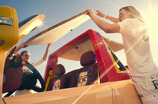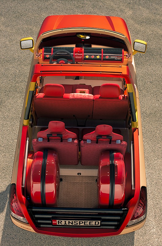 this latest rendition of the Rinspeed Bamboo Concept is the result of the collaboration between Swiss engineering firms 4erC and Esoro. on top of what the original Bamboo Concept has, this latest iteration has been given an artistic treatment by world renowned pop artist James Rizzi and numerous new features that will entice you to hit the beach once again. as with the original Rinspeed Bamboo Concept, this is definitely not a car for power-hungry petrol head but it is geared more towards the appreciation of lifestyle.