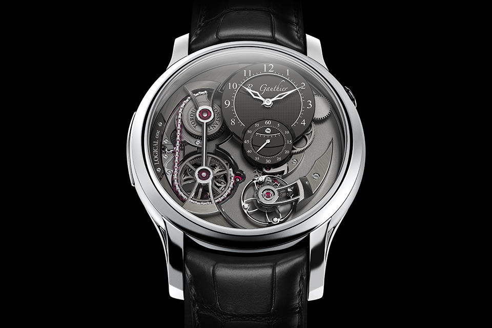 other features include the standard serving of hours, minutes and small seconds, a 60-hour power reserve (it is a shame that the power reserve indicator has to be located on the caseback, though), a 43mm red gold or platinum case, water resistance to 50 meters (150 feet), sapphire crystal with anti-reflection coating on both front and caseback, time-setting crown with sapphire cabochon at 2 o’clock, an in-house manufacture movement caliber, and alligator leather hand-stitched in Switzerland with metal pin buckle. rounding up the aesthetic department are the highest level of haute horlogerie finishing that encompasses hand polished screws and jewel countersinks, hand bevelled and polished bridges and plates. it is not known how much this awesome time piece will cost, or when it will be made available. check out a few more larger views in the mini gallery below and catch the product video further down, or learn more the Romain Gauthier Logical One HERE.
