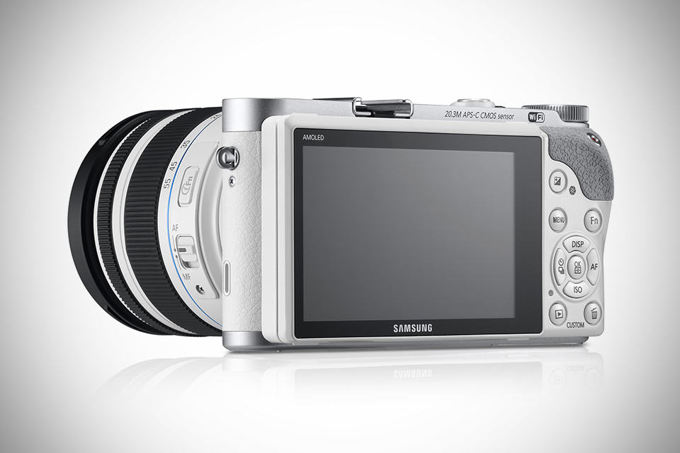 if there’s one product that’s not lacking in the market, it will be digital camera and that is a good news for consumers but not quite so for manufacturers. hence, an excellent spec-sheet and an alluring design is what’s going make a camera catches our eyes, which the new Samsung NX300 Smart Camera happens to have. the NX300 stands as the new flagship model that combines form and function, and is one example of how the Korean electronics giant has matured in the digital shooter arena. packed within its pro-style, retro-modern chassis is a 20.3-megapixel APS-CMOS sensor coupled with a hybrid autofocus system and an in-house developed DRIMe IV imaging engine that offers a wide ISO range (100 to 25,600) and full HD 1080p video recording in both 2- and 3D (when coupled with the optional 45mm 2D/3D lens). other noteworthy features include a tilt-able, 3.3″ AMOLED hybrid touchscreen display, 5-way manual key interface, HDMI out, SD card slot, support for RAW image and built-in WiFi for instant sharing of captured stills with a smartphone or tablet via the Samsung SMART CAMERA app (available for both Android and iOS devices). a remote viewfinder function is also possible with the use of the app. information regarding the pricing and availability remains unknown at this point but that should change when this shooter graces the 2013 International CES this week, along with a slew of other new exciting products. scroll down for a small gallery of the new Samsung NX300 Smart Camera.