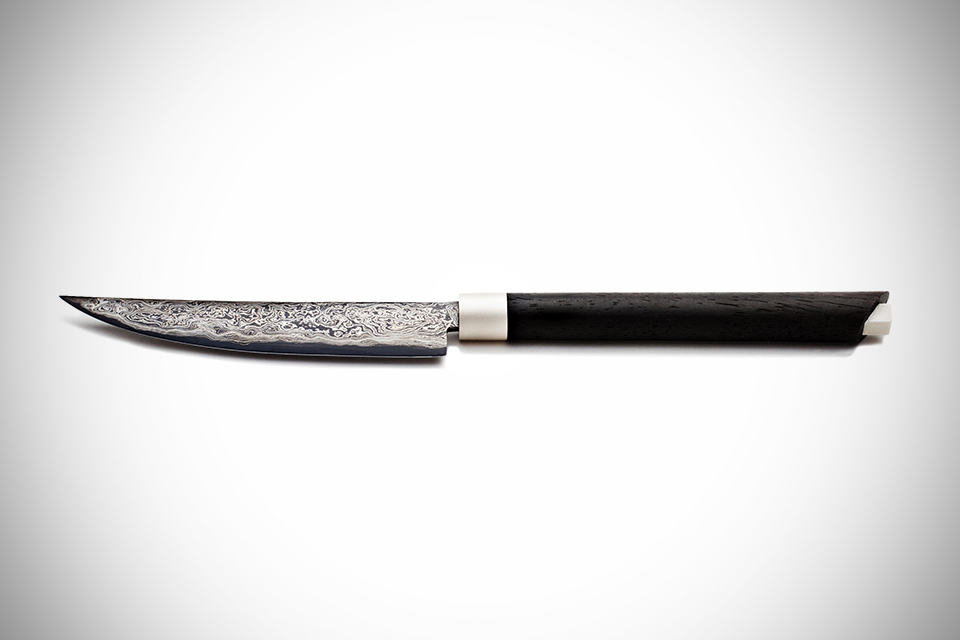 steak knives. who doesn’t have them? but does your steak knives really speak of your taste in life? hardly, we should think. so if you are looking for something that look as good as it function, and/or as good as your medium rare slabs would, then you should really and we mean really, check out the Shastra Series Steak Knives Set by Blades of the Gods. also, if might add that you should have considerable amount of disposal income to do so cos’ this super charming knives set is going to hit your with a $9,150 bill. alarming price tag aside, the Shastra Series Steak Knives Set by Blades of the Gods is for folks who demand more than just an implement to slice through those tantalizing meat, but also one that scores big in the look department. it combines ergonomic functionality with traditional aesthetics of intricate Balinese carvings that offers a uniquely different feel the next time you consume your steaks (rustic, perhaps?). features include an ebony handle with sandblasted sterling silver elements and a carbonized steel edge blade that were hand-forged to 161 layers of manganese iron, pure nickel and a high carbon steel. these knives are not made for a knife duel, but if it were, we are sure they would rein in the pugilistic arena. the Shastra Series Steak Knives Set by Blades of the Gods comes in a set of eight with each set neatly arranged in purposed made box crafted from indian rosewood and wrapped in fine black calf skin for that extraordinary touch of exquisiteness. and why not? after all, we are talking about a set of knives that cost nearly a grand.