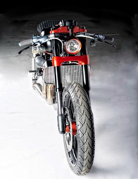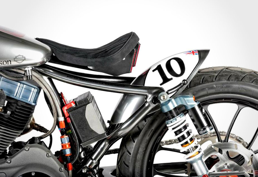 a custom performance motorcycle without the look is like a powerful computer without a decent casing. give it a mundane case, you won’t feel the kick using it. admit it. this holds true for most of us. but that won’t be the case for the Shaw F1-XLR Harley Nightster, a Harley tricked out by UK-based Shaw Speed & Custom. drawing its inspiration from 1920s Harley board racers, the Shaw’s rendition is given a smoky grey paint job as the McLaren Formula One team, accented by some touches of bright orange hue – a combination that draws us to it in the first place before we proceed to discover other hidden treasures that this awesome bike holds. it features a 1200 V-twin with a ram-air intake for improved breathing, a one-off custom set of exhaust pipes, plus details such as modified Covington rocker covers, larger pushrod tubes, and a shortened cam cover. other highlights include upside-down forks from a VRSCF V-Rod Muscle matched to clip-on bars, heavily modified seat area where the fender rails and upper rear subframe are removed, a small race-style rear fender – spruced up by number marking, extended swingarm, WP shocks, chain-driven, and 21-inch Performance Machine wheels and huge 13-inch brake rotors matched with six-pot calipers wrapped up the beautiful package. unfortunately, this British-built example turns out to be a prototype which we can only ogle over. alas, life isn’t perfect but at least we get to salivate over some beautiful images, available after the break.