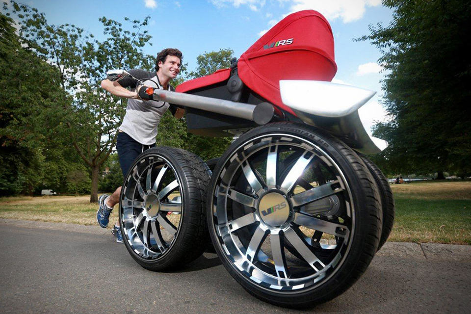 our question is, will it be motor assisted? cos’ we can’t imagine the effort required just to nudge the four humongous wheels around. nevertheless, an awesome concept that we considered the next manliest baby stroller since the Longboard Stroller.