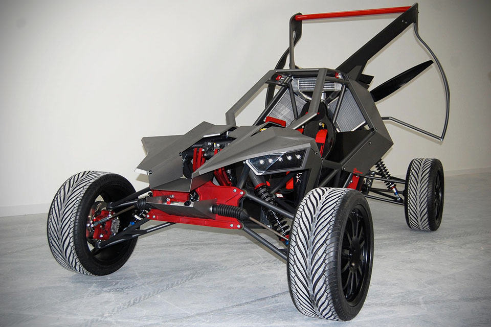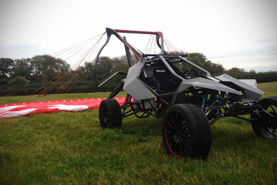 you have read a lot about flying cars, but until now none has come close to fruition and so the SkyRunner Flying Car you see here is your best bet for a road-running vehicle that can take to sky. technically, it qualifies as a flying car because it can actually takes to the sky, but it isn’t quite the flying car you might have dreamed of. it has no wings and it look like just another regular all terrain vehicle, but when it comes the time to take this machine off the ground and across some lake standing in your path, it has a parasail and a massive pusher propeller to do just that. it has a body made of fiberglass and carbon fiber, and is powered by a 1.0-liter EcoBoost Direct Injection Turbo engine that puts out a healthy 92 kW (123 hp) and 200 Nm (147 lb-ft) of torque, mated to a four-speed transmission, giving it a top speed of 115 mph (185 km/h) and takes just 4.3 second to launch its sub-1000 lbs weight from 0 to 62 mph (100 km/h).