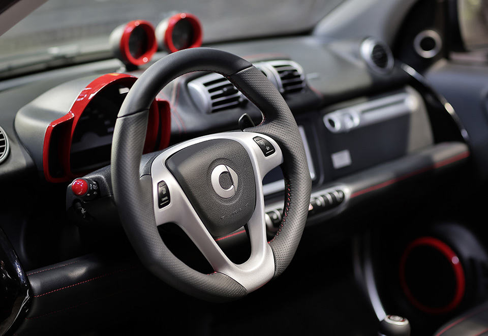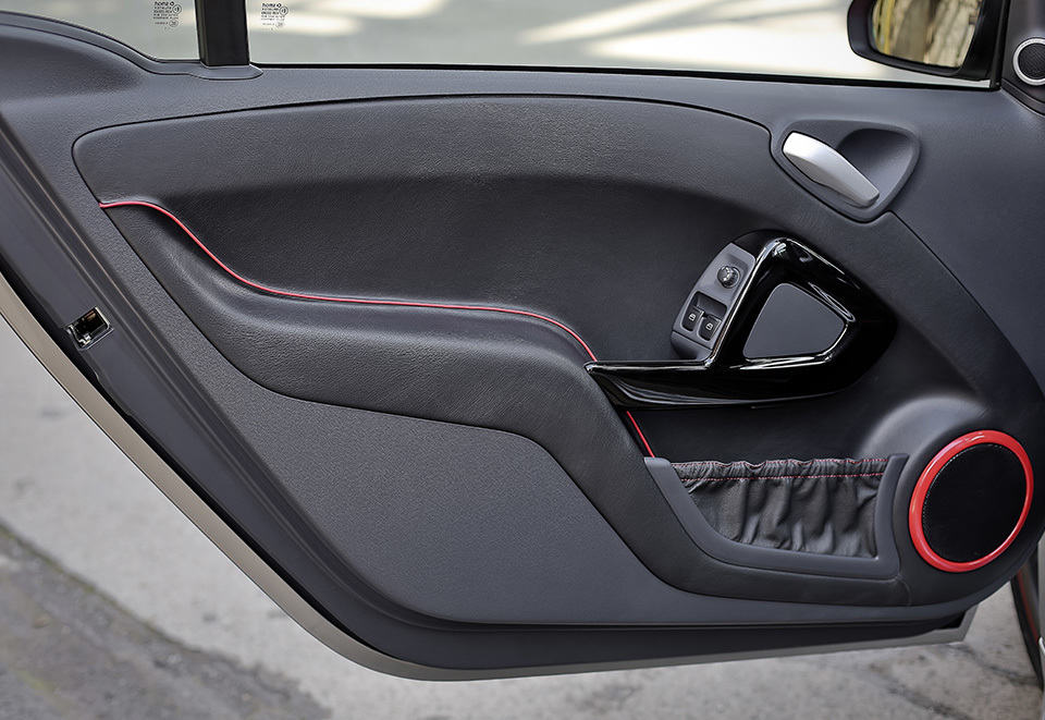 other highlights include titanium colored headlamps, striking red BRABUS logos on the exterior front and rear of the car, hand-stitched black leather interior, contrasting red hue for various trim parts, BRABUS sports steering wheel with cruise control, gear shift level knob with integrated starter button, and a serialized number plaque to remind you and your passenger that this is not your regular BRABUS pimped up fortwo. on the equipment aspect, expect to see comfort and light package thrown in, heated seats, electric power steering, LED daytime driving lights, audio and navigation system, as well as matt grey hued BRABUS Monoblock VII alloy wheels. in case you haven’t notice, the smart BRABUS 10th Anniversary is a special model created to mark the 10 years of smart-BRABUS collaboration and only 100 units will be made available with availability and pricing to be advised. do not miss a gallery of this beauty, available after the break.