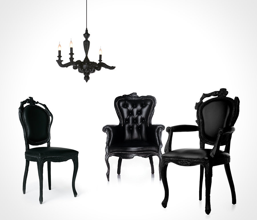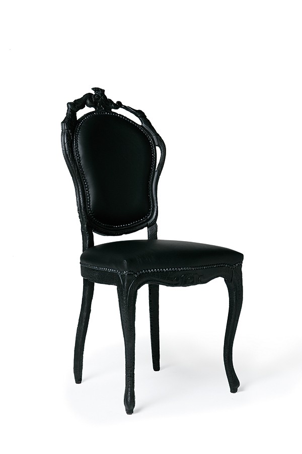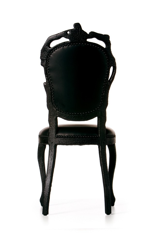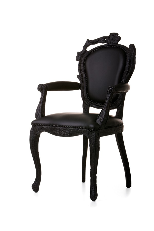 go on and sneer at those typical furniture, cos’ indeed there are more unique furniture in the market that your money can buy and the Smoke Furniture Collection by Maarten Baas is surely going to blow your mind. ‘smoke’ is not uncommon in food but for furniture? it is virtually unheard of. designer Maarten Baas literally put his collection under the fire and finished off with epoxy resin. the randomness of the natural burnt pattern is a characteristic of burnt product, which ensures no two pieces are exactly the same. the collection includes a chair, a dinning chair, a dinning arm chair, as well as a chandelier. each chair features fire retardant foam in leather upholstery and comes with a repair kit beneath the chair for “in case of emergencies.” though it is designed by Maarten Baas back in 2002, they are still available through Moooi boutiques across the world, including New York. check out the latest video of Maarten Baas’ firing up the smoke chair and more images of this beautiful collection after the break.
