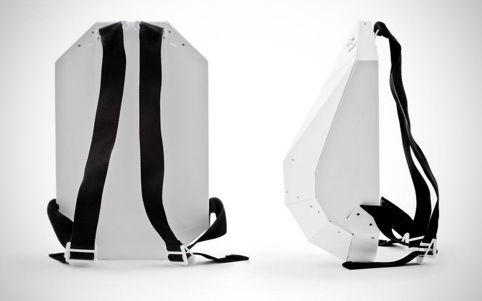 seriously, if you are all paranoia about protecting your gadgets, a soft-shell bag is never going to cut it. to set your paranoia mood at ease, you will need a backpack like the Solid Gray Backpack – a lightweight, folding hardshell backpack constructed of polypropene and features an internal lined with durable EPDM foam and straps to protect and hold down your precious hardware. additionally, there is a second pocket that offers storage for your smaller items. the flexible properties of the material used plus a dual of folding lines on the back promised to make carrying this pack a comfortable experience, so don’t let the all-round hardshell design fool you as far as user comfort goes. the Solid Gray Backpack offers storage for tablets and laptops up to 15-inch and is available in three guise: white-black, white-script, and white-white and carries a price tag starting from €139 or about US$170.