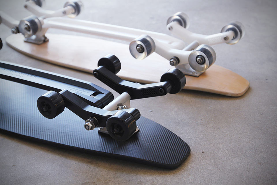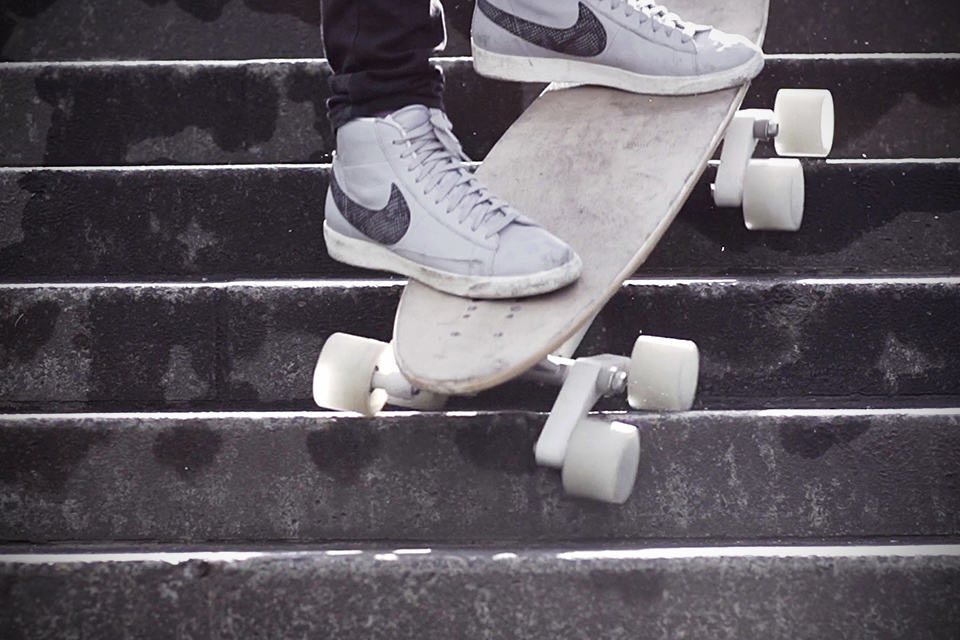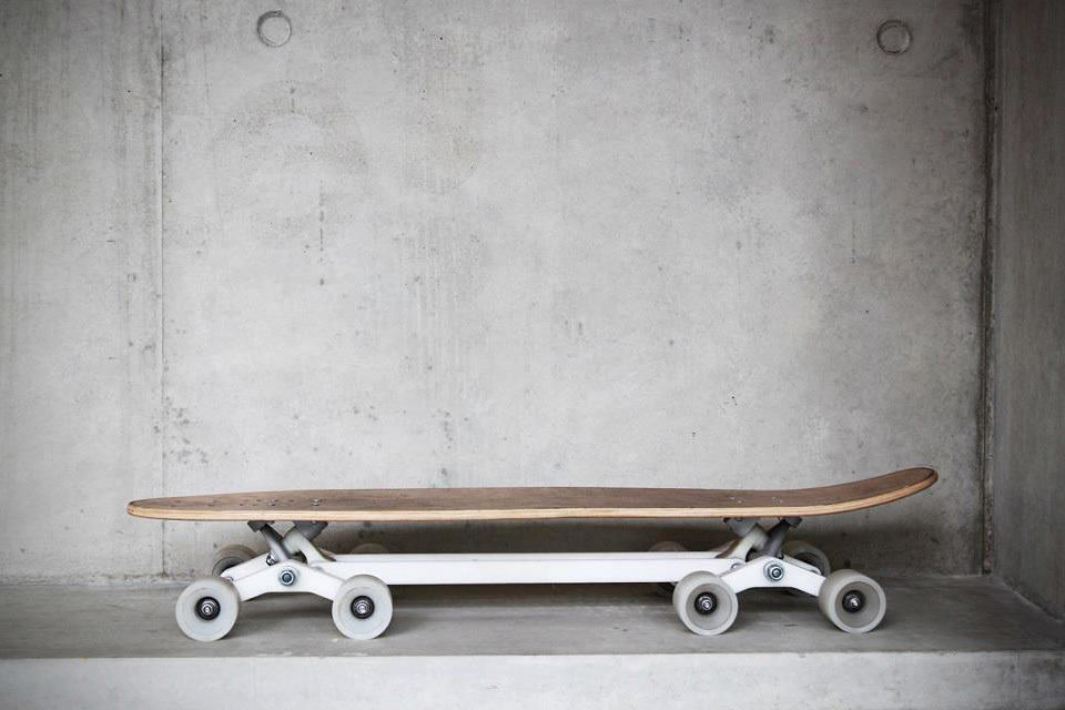 lack of hilly terrains in the urban area to enjoy the downhill thrills? then we say, do the downstairs instead. yup. that’s right, going down the stairs and that’s what the aptly named Stair-Rover can and will let your do. the Stair-Rover is designed from the ground up to let you “surf the entire city” and anyone who lives in the city knows very well what a typical city has to offer: curbs, uneven pavings, cobblestone walkways, stairs, stairs and more stairs. in order to tackle these modern day, urban terrains, the Stair-Rover is designed with twice as many wheels (yes, eight of them!) paired to four patent-pending V-frames, custom aluminum trucks, and a chassis crafted from engineering thermoplastic.