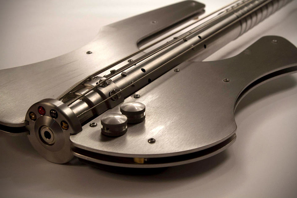 it is a known fact that bassist is not exactly the most glamorous job in a band. rarely does a bassist gets to be in the spotlight (appearing in Bass Guitar magazine doesn’t count). sure. once in a while you get to do the bass solo, but you can’t deny that is a mere candlelight shine than a real spotlight – however, if you were to take the Stash Stainless Steel Bass Guitar to the stage, things might turn out differently. billed as the only 100% stainless steel bass, it features a striking brushed stainless steel construction that its maker claimed that it will stay tuned, once tuned. that’s a pretty bold claim, but heck what do we care? we are totally sold by its look alone. it is the kind of bass guitar Duran Duran could use in their sci-fi like music videos – if you know what we mean.