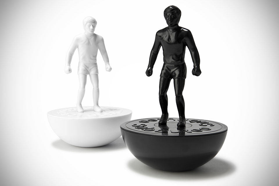 how many of you here remember Subbuteo? the tabletop iteration of soccer where we use our fingers to flick those tiny soccer players on half spheres around? though the modern iteration was launched in the 60s, it was still a hit in the 70s and being kids of those days, i was totally all over it, but alas, i wasn’t fortunate enough to acquire one. my only consolation was savoring those enticing Subbuteo television commercials and occasional ogling from the shop windows at our local shopping mall. anyway, if the Subbuteo memories still lingers around you, or you are simply a huge English football fan, here’s something that should tickle your fancy: a set of Salt and Pepper Grinders that takes the form of the Subbuteo’s miniature players of 1960s, though the duo is anything but miniature this time round.