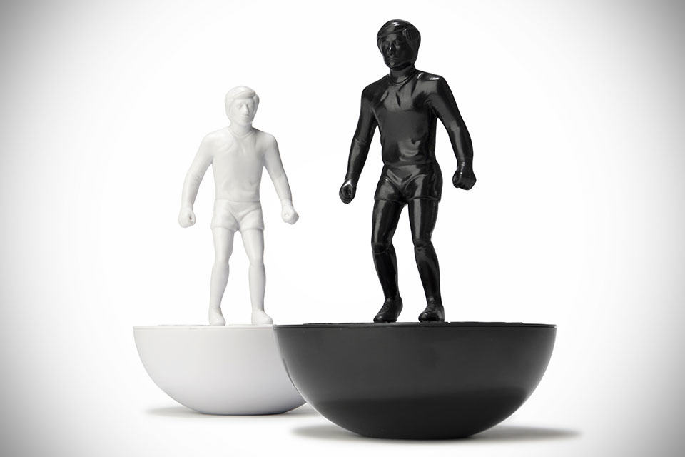officially licensed by the maker of Subbuteo, it comes in white for salt shaker, while the pepper grinder is in black. sorry to disappoint, but these big little fellows ain’t donning any jerseys for their new found tasks and flicking them around is absolutely not recommended as these set of kitchenware are made of ABS plastic, with the grinding mechanism made of ceramic, which means it will most definitely breaks if they are unfortunate enough to take a dive off the dinning table. nevertheless, we thought the Subbuteo Salt and Pepper Grinders make an excellent gift idea for football aka soccer fans this holiday season. turning your dinning table into a scaled down soccer pitch is entirely optional. available now from Thabto web store for £30 a set (or about US$48). we just can’t get enough look of it and we thought you might too, and if so, hit the jump for a few more hi-res product images.