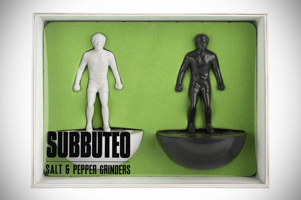 how many of you here remember Subbuteo? the tabletop iteration of soccer where we use our fingers to flick those tiny soccer players on half spheres around? though the modern iteration was launched in the 60s, it was still a hit in the 70s and being kids of those days, i was totally all over it, but alas, i wasn’t fortunate enough to acquire one. my only consolation was savoring those enticing Subbuteo television commercials and occasional ogling from the shop windows at our local shopping mall. anyway, if the Subbuteo memories still lingers around you, or you are simply a huge English football fan, here’s something that should tickle your fancy: a set of Salt and Pepper Grinders that takes the form of the Subbuteo’s miniature players of 1960s, though the duo is anything but miniature this time round.