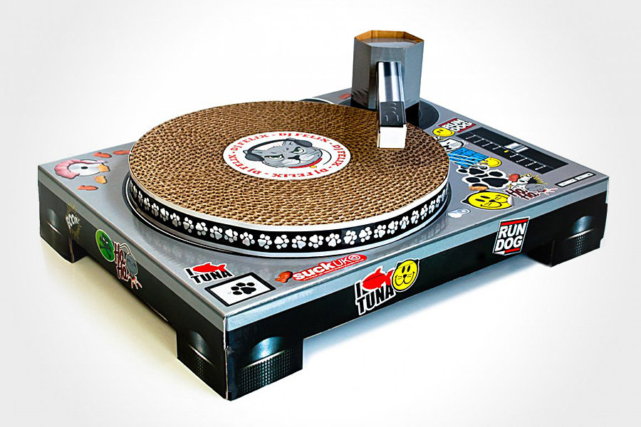 cat owners know how it is. the constant threat of your priced furniture turning up into shreds can be a real headache but still, you know you cherish your feline friends so much that you want it to have the best and yet, you wish it could spare your furniture of an untimely demise. that’s where this lovely Cat Playhouse comes in. designed to look like a classic DJ turntable, the Cat Playhouse has a turntable with a scratch mat ‘record’ for your lovely feline friend to do its DJ scratching – the cat’s way. it comes complete with a scratch mat platter that spins as your cat paws it, poseable tonearm and adorned with cute feline-oriented decals. all that’s left to do is to sit back, relax and enjoy watching your cat scratching its way into car-stardom. headphones and blinding disco lights are optional, at your own additional expense, of course. for just £15.00 a pop (about US$24), you could do your gorgeous furniture a huge favor and give your beloved feline friend some entertainment that we, beings, have been enjoying.