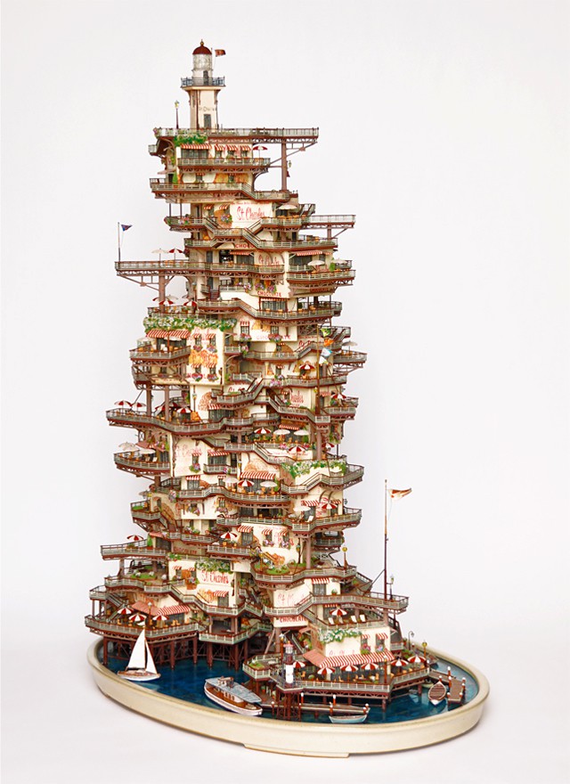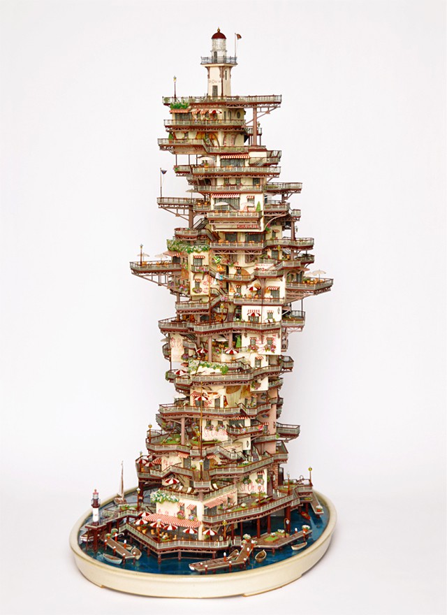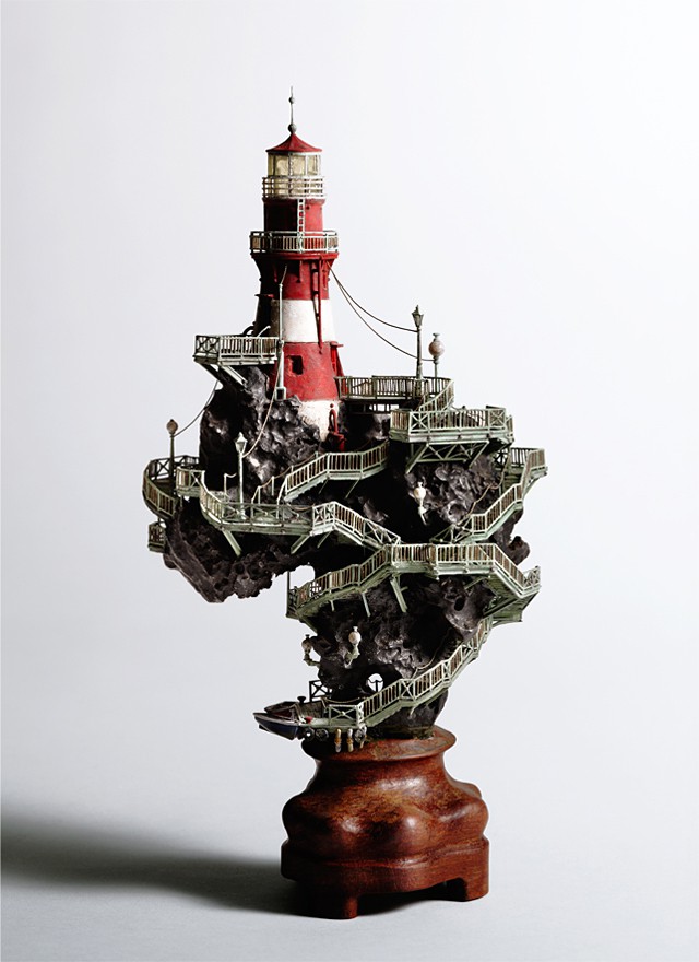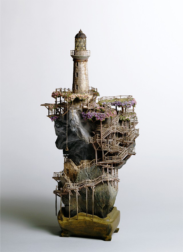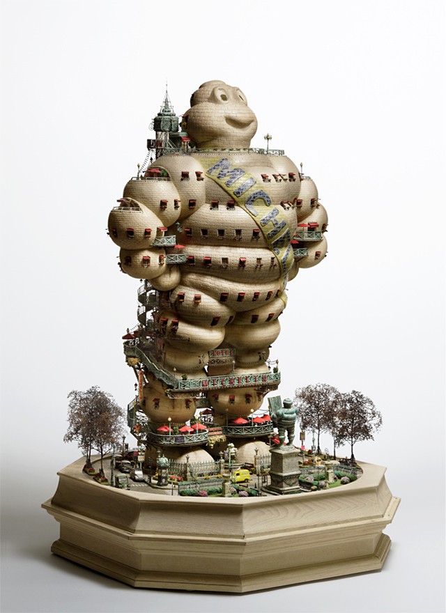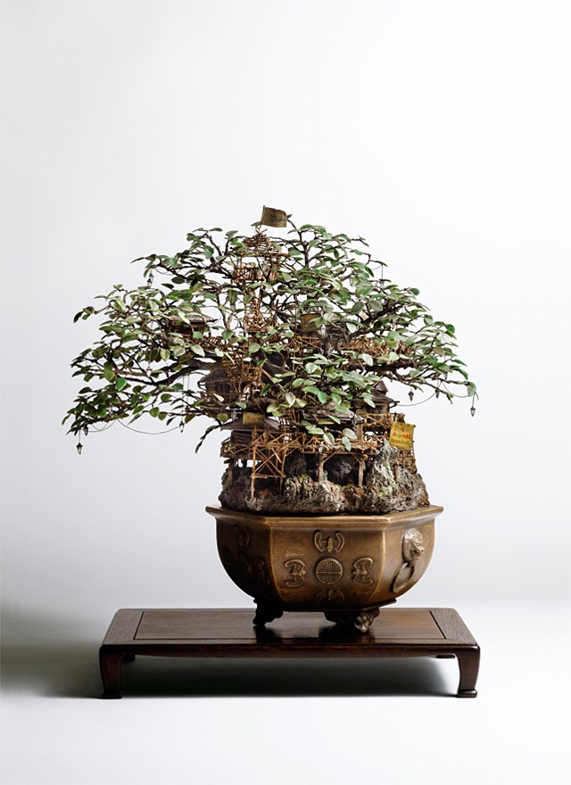 bonsai, an ornamental tree of a miniature proportion, normally don’t appeal to non-flora lovers like us but there is a special breed of bonsai that managed to awe us. we were totally fixated on his works even though images were all we can see. these unique bonsai trees created by Japanese artist Takanori Aiba brings about a whole new bonsai art form that fuses Lilliputian architecture designs with the traditional bonsai. what’s more impressive is, the structures that he integrated into the bonsai are derived out of the pages of his imagination. in short, none of the buildings are real-life miniature replicas. he even dreamed up of a hotel created out of the iconic Michelin mascot, dubbed the Hotel de Michelin, which is currently displayed in his restaurant in Tokyo. Aiba didn’t exactly put a name on this new bonsai art but we would gladly call them Bonsai Art(chitecture). unfortunately, these awesome work of arts are not for sale, at least for now. though you’d be lucky enough if you are able to appreciate them in person, cos’ these artworks are only exhibited in Japan. we just hope Aiba would eventually bring them on a tour around the world but in the meantime, we just have to settle for some images which you will find after the break.