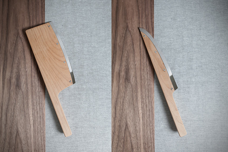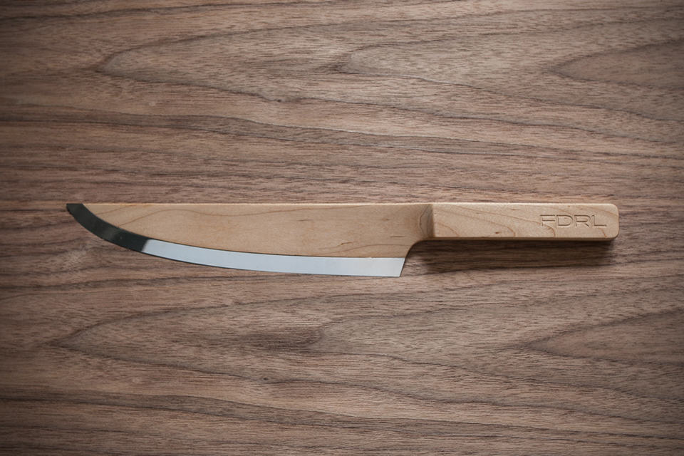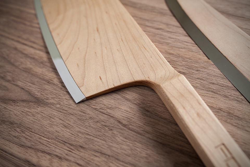 knives are made of steel, which is fact that will never change for next few decades or so. ceramic knives did made an attempt to usurp the throne reigned by steel (carbon included) but to no avail. so, our question is: will a set of knives crafted from maple wood (leaving just the slicing edge as steel) such as The Federal Maple Set Knives, make the cut? we really don’t know but we kind of dig the idea. guess it is mainly due to fact that there isn’t exciting coming out of the knife cohort and hence, when one is crafted from a single slab of maple wood that extends from the handle to the knife body, appears to be a beautiful proposition and at this point, we couldn’t care less if it will slice and dice as well like its steel counterpart. the wood is sealed and food safe to allow for ease of cleaning up. it is said that the sharp steel edge is actually double the width (or should it be height?) of what you actually sees with the rest of the steel being buried inside the maple wood, ensuring it stays in place during use. how well it will work out, again, is anybody’s guess. since the Maple Set Knives are crafted mainly from wood, it should be extremely light, however, its designer did not explicitly claim that but instead, touted that the knives’ weight “is balanced” thus ensuring that “they can be used by any level of chef.” aesthetically speaking, there should be nothing we don’t like about maple wood as the major material of a knife that’s supposed to cut but can’t say the same for the functionality. sure, it will definitely cuts but just how well is, like we said, anybody’s guess. the Federal Maple Set Knives is currently still at its prototype stage and sadly (or not), its designer has no plans for production anytime soon. but fear not, we have some imageries as consolations, which you can find after the break.