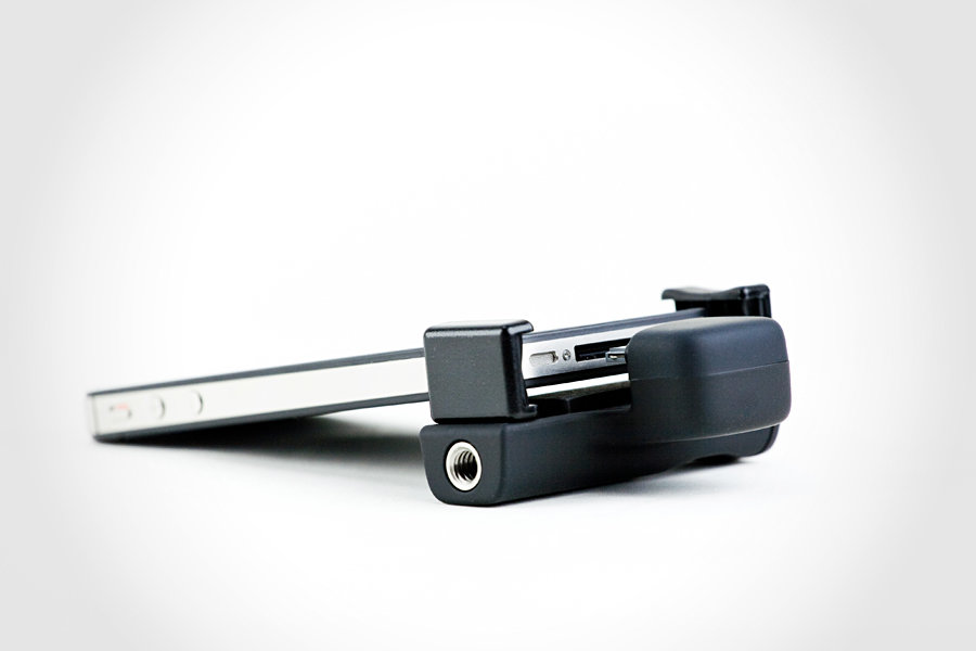 though the iPhone 4S received a boost in the imaging department but it never truly became a full-fledge digital camera replacement because screen-tapping shutter never really feels like a real camera anyway, it never will. so, when iPhone introduced the use of the volume rocker as the shutter button, it was a welcome move but it is not exactly at an ‘ergonomic’ position, so to speak. especially true, if you have huge hands. however, avid iPhonegraphers need not fret as the iPhone Shutter Grip is here to complete your iPhonegraphy experience. it plugs right into your iPhone 30-pin dock connector, immediately equipping your iPhone with a shutter button, a tripod mount, and a handy grip. other features include adjustable fit so that you can use it even with the iPhone case on and capturing of still images while in the midst of a video shoot. for once, iPhonegrapher can brand themselves as true shutterbugs and not just mere screen-tappers. The iPhone Shutter Grip is available from our favorite photography store, Photojojo for $40 a pop. hit the jump for a few more look.