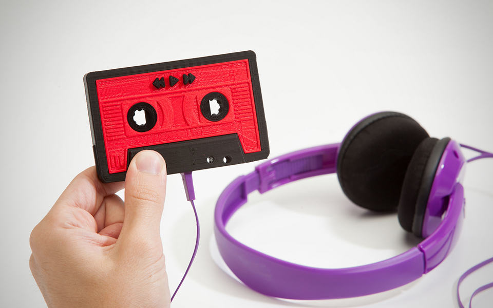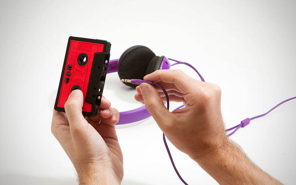 long before the digital music revolution, we have mixtape which we curate our favorite tunes from various sources, including other tapes, vinyls and even the radio, and compiled them into a cassette tape. it was a long, tedious process that involves an audio system that has a double deck cassette tape player and lots of button pushing. digitizing has made consolidating our favorite songs a whole lot easier but in the process, the magic of a mixtape was lost. playlist on iTunes is cool but it is never the same without a tape. the MakerBot Mixtape aims to bring back some of those magic. styled in an old fashion cassette tape, this MP3 player features a standard headphone jack, a built-in rechargeable lithium-ion battery for up to four hours of playback, 2GB of storage for your desired songs, and three buttons with five functions, including play/pause, skip forward, skip backward, equalizer and reset. it comes with a USB cable for hooking up with your computer, allowing you to drag and drop your music files into it and recharges its internal battery at the same time. it is totally plug-and-play, so no fancy software to fiddle with or whatsoever and it will appear as an external drive when plugged into your computer. which also means, you can use it as a medium to store and transfer your other digital contents too. available in two versions: MakerBot Mixtape Kit ($25) for those with MakerBot and MakerBot Mixtape ($39) for those without. without doubt, this is a perfect gift for your love ones – beating CDs one up. take a few more look and enjoy a short product video after the break.