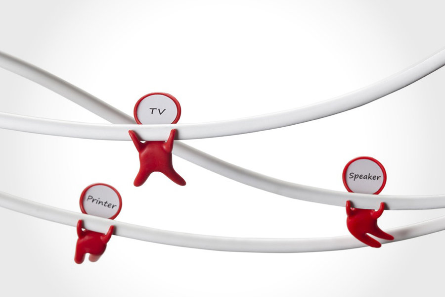 the world is plagued with too many cables. cables for your set top box, TV, BluRay player, computers, multimedia speakers and the list goes on. more often than not, these cables end up in one or two locations, which makes disconnecting them a hair-pulling experience – cos’ we probably forget which plug leads to what. instead of shutting all down and taking the trial-and-error disconnecting routine, why not employ these little guys to help you out? and by ‘these little guys’ we meant the The Mark Brothers: Cable Labels. unlike the typical labels that stick to and become part of your cables, these red acrobatic figures mark your cables prominently and its cute round label offers you enough real estate to indicate which cable leads to what device. well, what can we say? it is simple things like these that makes life a whole lot organized. the The Mark Brothers: Cable Labels cost £7.50 (about US$11.99) for a pack of five little men and is available through Mocha UK.