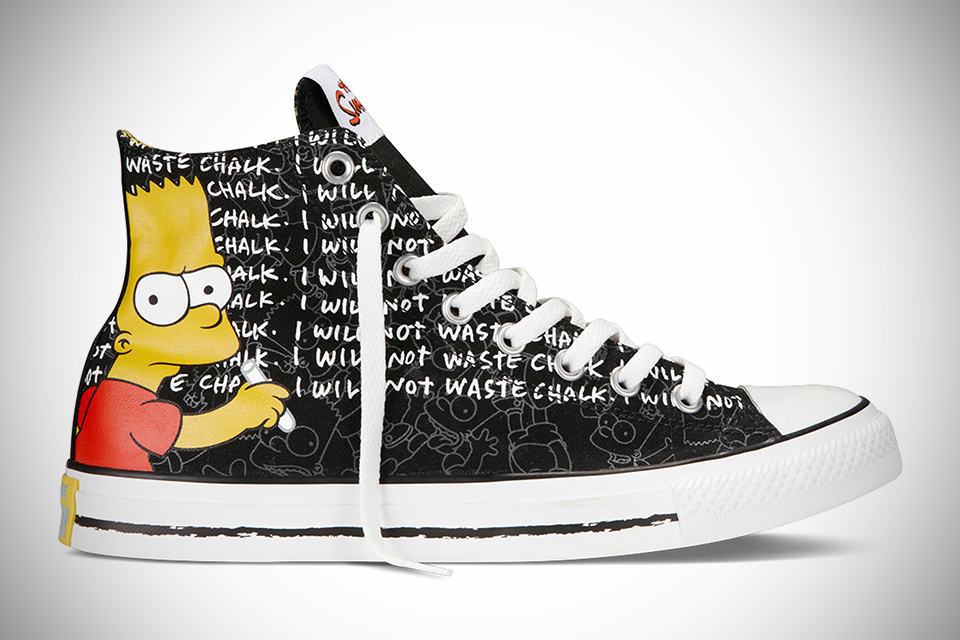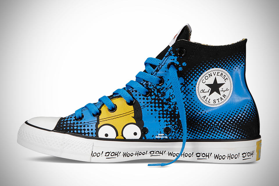 take one of the world’s most loved TV family (and the longest scripted show in TV history to boot) and put them together with the one of the world’s most recognizable footwear such as Converse, and you will witness the coolest sneakers on earth and that for the record, my friend, is none other than The Simpsons Chuck Taylor All Star. the exciting collection consists of three adult size sneakers, plus a trio for the juniors. to be fair, there are really only three designs, as the kicks for junior’s shares the same design as two of the adult size pairs. basically, like any collaborations, these sneakers give you the best of what Chuck Taylor All Star has to offer, decorated in colorful screen printed graphics of the characters from The Simpsons family, including one pair dedicated to Homer (featuring his signature exclamation “D’oh” and “Woo Hoo!“), one featuring Bart scribbling on the black chalkboard (being punished, obviously), and one sporting the usual Homer-pissed-off-with-Bart graphics along with the girls of the family. awesome stuff.