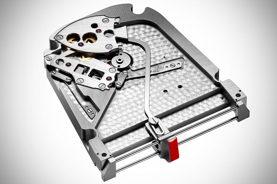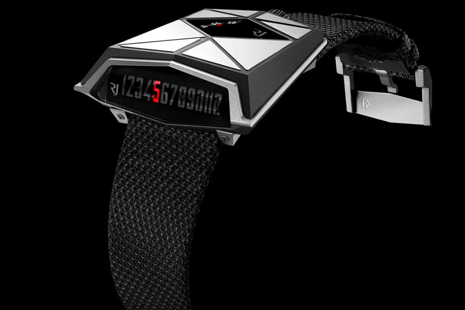 wrist watch with unconventional time telling is not new in the ‘commoner’s’ market but for the elite (read: super rich) domain, we hardly come across one that offers novel way of time telling – extravagant, yes, but certainly not out-of-this-world time as far as time telling is concerned. The Spacecraft by RJ-Romain Jerome stands out as one luxury time piece that goes the novelty route. with two big names in the watch industry – Eric Giroud and Jean-Marc Wiederrecht – pitching in for the design of this spacecraft-like luxury watch, you know this ain’t going to be your run-of-the-mill luxe time piece. the unusual trapeze-shaped titanium case is PVD-coated and on its top, it is where the minutes are told via a black rotating disc with a red indicator that safely shield by a sapphire window, while the front features a linear hour display with the current hour highlighted by a red retrograde indicator. other features include a mechanical self-winding movement developed in Jean-Marc Wiederrecht’s Geneva-based manufacturing facility, time-setting screw lock at 12 o’clock and it comes fitted with a black polyamide mesh strap. The Spacecraft by RJ-Romain Jerome will exist as a 99-piece limited edition time piece with yet-to-be-announced price tag. take a few more look in the small gallery below and also check out a product clip in the embedded video right after the gallery, or learn more about this exquisite time piece HERE.
