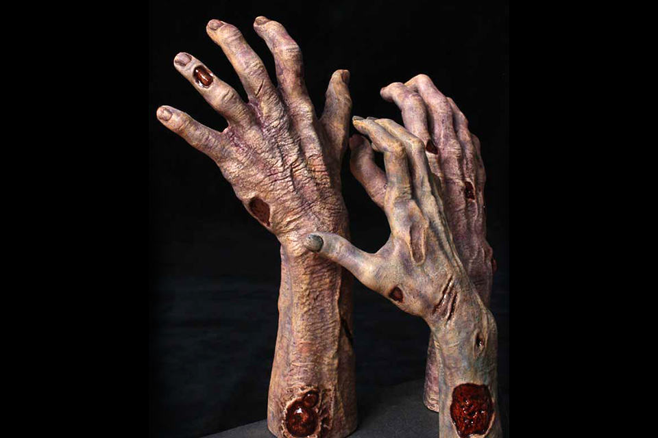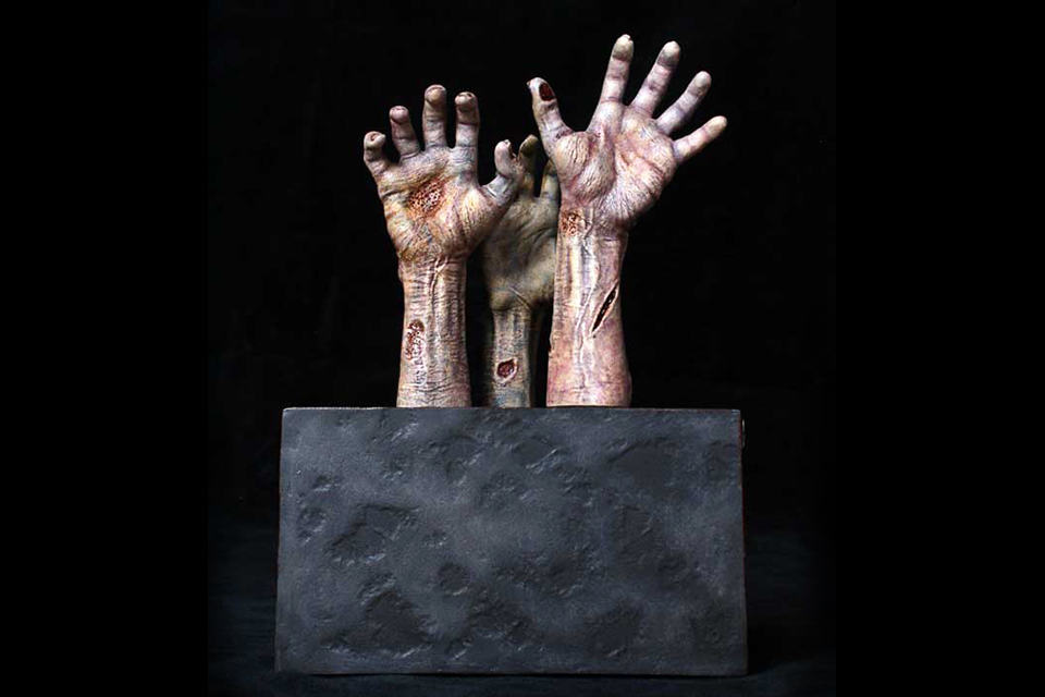 need a hand or two or maybe three to keep your books neat and tidy? then you are in luck, cos’ Gentle Giant has, literally, hands to help keep your books upright on the shelf. meet the The Walking Dead Logo Bookends. each set of bookends features a triangular base adorned with the hit AMC show’s logo with a trio of zombified grabbing hands reaching out to brace your books, instead of you (aren’t you feeling lucky? or you prefer the other way round?). crafted digitally by the master artisans at Gentle Giant, these limited edition bookends are rendered in the highest quality polystone resin with extreme details including broken sores, rusted skins and open wounds and painted by hand in the most gruesome exactness possible. each set of bookends are individually numbered and comes with a certificate of authenticity to ensure that you are getting the real deal limbs, erhmm, we mean bookends. set to be available in third quarter of this year, you can pre-order this grotesque and yet alluring bookends for just $89.90. how many of these limbs will be reaching out to avid collectors is yet to be disclosed but the rule of thumb is: don’t wait if you really want a set. scroll down for a few more larger views.