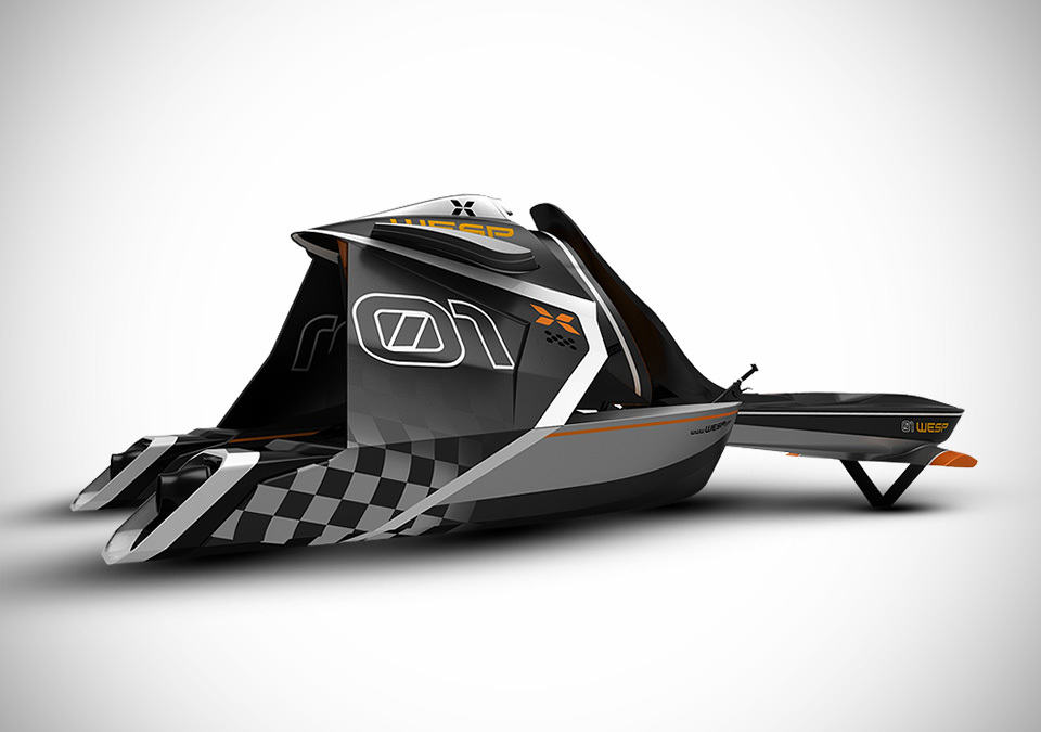 Formula 1 is the epitome of a lot things – from fantastic marketing campaigns to the adrenalin rush of the sport itself to the fame and fortune that the race car drivers achieved but if you put those aside, Formula 1 drivers and its crew are constantly putting their lives in the line of fire. however, being an adrenalin junkie who has no benefit of the glitz and glamor or huge monetary return to speak about, means you really need not put yourself in harms way like the Formula 1 stars do. speaking of which, you could probably get the similar thrill on the water – that’s if the WESP becomes a reality. the WESP inventor and designer, Pieter Myny and Daniel Bailey, have billed their beautiful creation as the ‘Formula 1 on water’ and it certainly sounds like one too (check out the video after the break and you will know what we are talking about). this futuristic-looking (at least, on its render) watercraft is built for both gentle cruising, as well as high speed racing. the craft comprises of two separate sections: the fore and the aft, linked together via revolving hinges. the aft is where the 110 horsepower marine engine is, while the front is the pilot’s throne in a lay back style, similar to those of the Formula 1 race car. there’s no steering wheel, instead, the watercraft uses body motion steering system to maneuver, much like how one would steer a skateboard and that’s leaning from side to side. at this point, it sounds like a superb idea if the craft is merely at its cruising speed but we are not so sure how it would work out at high speed. regardless, we are still excited about this concept and certainly hope it will become a reality. check out a few more renders and a short clip of the prototype WESP on the water after the break.