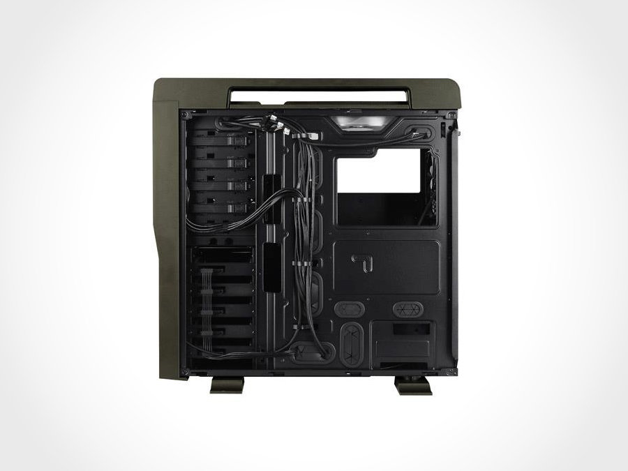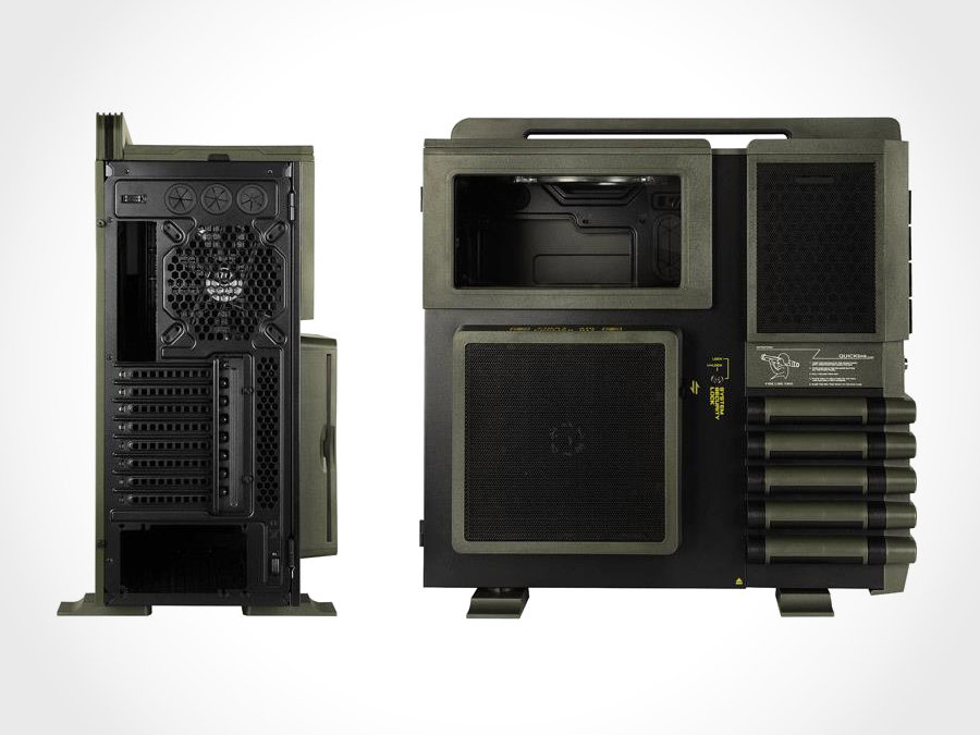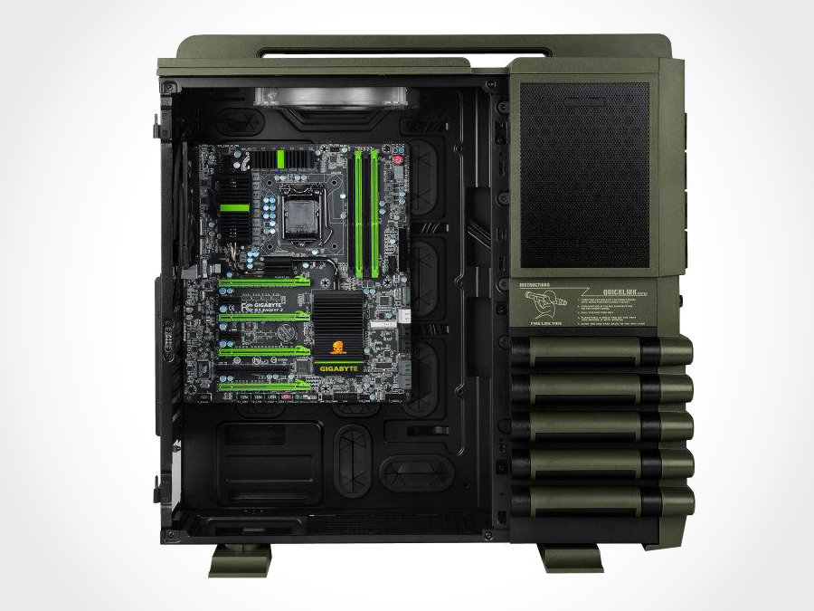 while full fledge first person shooter simulator remains as a mortal gamer’s fantasy, avid FPS fans can at least soup up their rigs to look the part of battle-ready gear. the new Thermaltake Level 10 GT Battle Edition is just the computer chassis you will need to do that. based on the original Level 10 GT, the Battle Edition is given a military green paint job treatment with military-inspired prints spread around its chassis (such as a mock bazooka operating instruction). couple those with the original Level 10 GT’s futuristic styling, the Battle Edition does really look like a complete battle rig. expect features inherited from the original Level 10 GT such as internal SuperSpeed USB 3.0 ports, EasySwap HDD bays, extra-long graphics card ready (up to 360mm or 14.2 inches), QuadFans for maximum ventilation and cooling, adjustable fan ambience colors, advanced cable management, smart security lock system, and liquid cool-ready. availability and pricing are still yet to be confirmed. click through for a few more look.