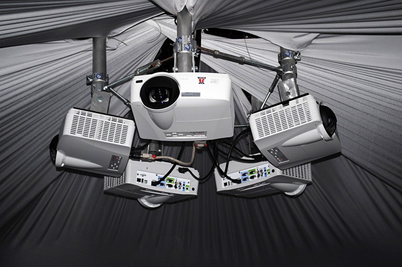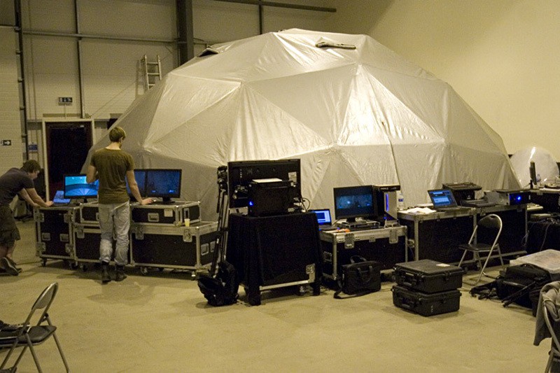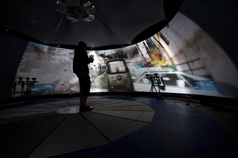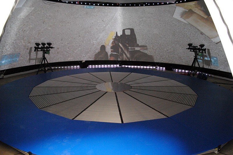 firstly, you can’t buy this but on the second thought, if you have extremely huge pockets (£500,000 to be exact) and a studio with a good space to spare, you probably could get the same folks who did it for The Gadget Show to do one for you. so what am i talking about? i am referring to this awesome first person shooter (FPS) simulator created by a team of design experts commissioned by The Gadget Show. the design team converts a Birmingham studio into an ultra immersive FPS simulator at a cost of £500,000 (about US$800k). the setup includes a four by nine meter video dome, five HD projectors, an omni-directional treadmill, ten infrared motion tracking cameras, a sensor on the user’s gun, Kinect hack for the necessary jumping and crouching actions, and twelve paintball markers. yes, it has twelve paintball guns that will shoot back at you, ensuring the user will get an ultra immersive FPS, if not painful, experience. i can’t say it’s a dream come through but judging from my pass gaming experience, i would probably suffer from lots of bruises after just a single gaming session. that’s how bad my FPS skill is. oh, by the way, the game used is the pre-release level of the Battlefield 3. the show was aired on the October 24th in UK. a trailer and a build & test video of this awesome FPS simulator follows after the break. check it out.