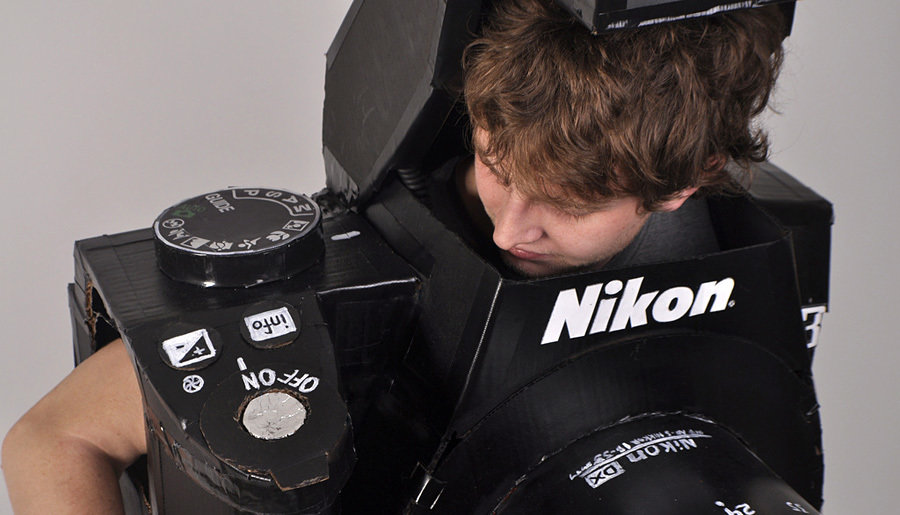 never mind that Halloween is well over cos’ i thought this costume is so awesome that it deserves some honorable mention. created by one instructables member by the nick of tylercard aka Tyler Card, this costume is in the form of a wearable DSLR (a Nikon, in this case) crafted out from some cardboards and incorporates a rear working camera and a laptop that allows it to actually take photos, and display the taken image on its LCD display behind the wearer. to take a picture, the wearer just need to hit the oversized shutter button and the image is capture from the front via the digital camera – just the real deal but only much larger in size. according to Tyler Card, it cost him only $35 to create this awesome costume but of course, that amount is excluding the necessary laptop and digital camera to take images. oh, it even has a pop up flash to add to the realism, and a pop up head and a couple of limbs. a must have costume for any shutterbug-geek for any costume party. more images follows after the break, along with a short demo video and a quick ‘how he made it’ video.