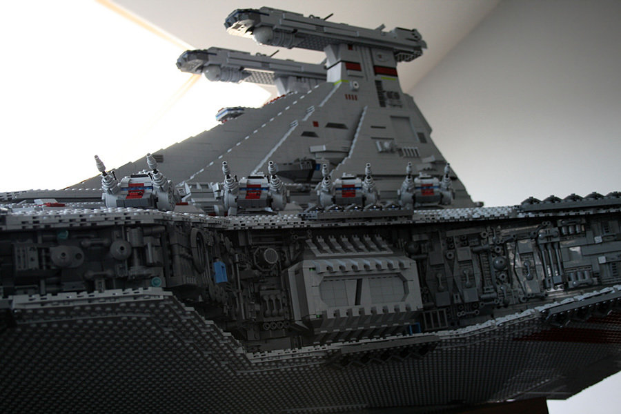 if you thought the LEGO Super Star Destroyer (#10221) was huge, then you have yet to see this non-kit, fan built LEGO Ventator-class Star Destroyer created by one Iomedes (aka Sylvain Ballivet). the mind-boggling 43,280 pieces of LEGO bricks used versus the 3,152 pieces of the #10221 kit, should let you in on just how huge is this scale LEGO model. inspired by one LEGO model designer, Erik Varszegi who had built one back in 2005 to promote the Star Wars Episode III movie, this LEGO juggernaut measures an incredible 2.44-meters (8-feet) long, and weights 82-kilograms (180-pounds) – a statistic which practically dwarf the LEGO Super Star Destroyer. all said, i hereby take my hat off to Iomedes for the patience and LEGO skills he possessed. only one word could describe this LEGO Ventator-class Star Destroyer: awe-inspiring. hmm, or was that two words? never mind. blast pass the jump for a video ‘tour’ and more images of this awesome creation.