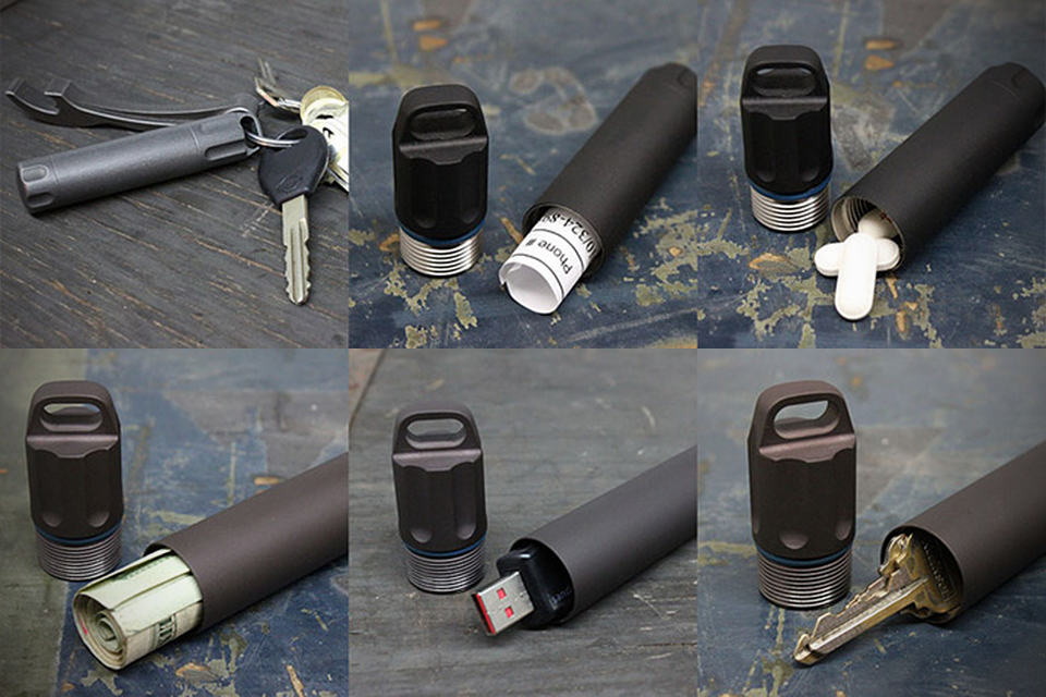 funny that we never actually noticed but we have a quite a bunch of tiny objects that we stashed in our bags that seem almost bottomless when we tried to dig for them. of course, there are better solutions than dumping everything into one huge bag such as having individual pouches or containers to hold them. however, if you want to keep your wee items away from the elements and do it with absolute style, then the Ti2 Sentinel is the ideal candidate. crafted from grade 2 titanium that has similar strength as steel but half of the weight, the Ti2 features water tight o-ring seal system to keep water out and has an industry-first three piece design with removable top and bottom portions, thus offering ease of pushing through objects that happen to be lodged within. other desirable features include a fluted ergonomic grip, corrosion resistant, a generously-sized ring slot that allows it to attached to wide variety of rings, clips, carabiner, lanyards et cetera and an unmistakably beautiful, manly-rugged look. the Ti2 comes in 8 variations with 3 diameters to suit different needs. available in matte patina finish and PVD coated (a further choice of brown, black or dark grey) and can be yours if you make a pledge of $30 or more over at its Kickstarter page. scroll down for a pledge video.
