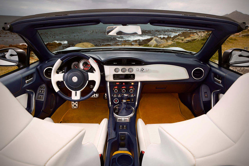 whether a droptop version of the Top Gear Car of the Year 2012 will be a reality, very much depends on the reception when the Toyota FT-86 Open Concept makes its appearance at the next week’s Geneva Auto Show. maintaining its 2+2 seating configuration, the FT86 Open shares the exact external dimensions of the much celebrated GT86 coupe, but now earned a multi-layered fabric roof (possibly electrically-operated) with a glass rear screen for those who dig the idea of catching the wind in their hair. the roof is said to fold down behind the fixed rear seats “with minimal impact on the luggage space.” though no specific were offered with regard how much volume will be left with the roof squeezed in there. powering the concept cabriolet is the same drivetrain on the GT86, which is the natural-aspirated 2-liter horizontally-opposed four-cylinder engine with Toyota’s D-4S direct injection technology. no mention of any change in outputs (power and torque), so we supposed we will be expecting the same 200 ponies (147 kW), along with a peak torque of 205 Nm (151 lb-ft). other known facts include a suspension setup consisting of MacPherson strut front and double wishbone rear, electric power steering, all round large ventilated disc brakes, larger wheels and tires package (again, no specific as yet), a claimed “near-perfect” weight distribution of 53:47, and a choice of short-throw, six-speed manual gearbox or a six-speed automatic with paddle shift. the show car has a bodywork in white, while the fabric roof is said to be in blue and the cabin is dominated by a two-tone leather upholstery with golden yellow stitching. take a few more look in the the gallery below, or scroll down further to see this concept topless beauty in motion.