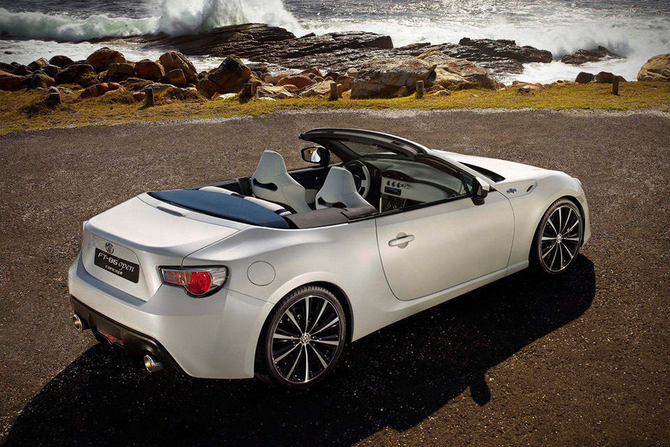 whether a droptop version of the Top Gear Car of the Year 2012 will be a reality, very much depends on the reception when the Toyota FT-86 Open Concept makes its appearance at the next week's Geneva Auto Show. maintaining its 2+2 seating configuration, the FT86 Open shares the exact external dimensions of the much celebrated GT86 coupe, but now earned a multi-layered fabric roof (possibly electrically-operated) with a glass rear screen for those who dig the idea of catching the wind in their hair. the roof is said to fold down behind the fixed rear seats "with minimal impact on the luggage space."