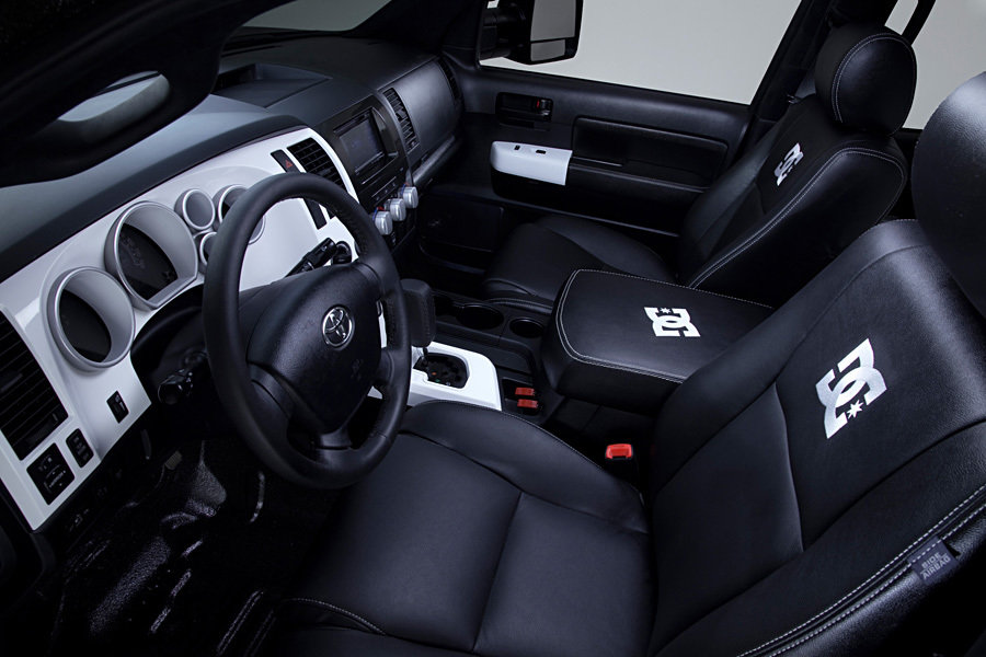 West Coast Customs used a Tundra Double Cab 4×4 equipped with the powerful 5.7-liter V8 and six-speed electronically-controlled transmission with intelligence. The truck also features Tundras standard bed and is a certified Flex Fuel vehicle.