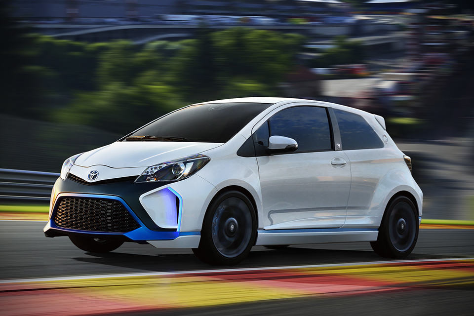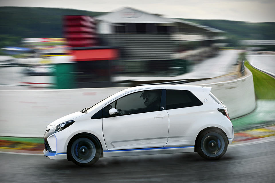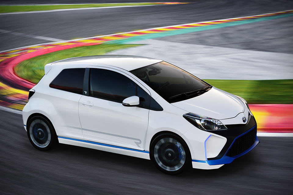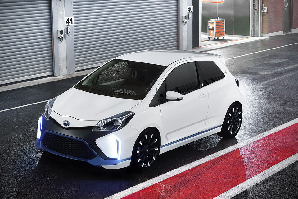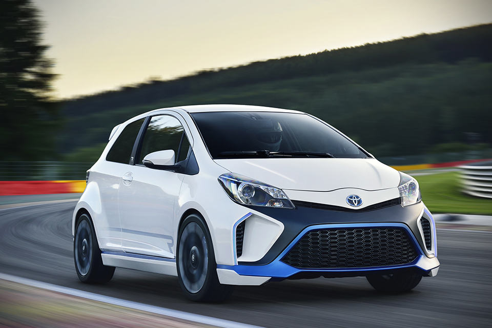 instead of using flashy, out-of-this-world concept to showcase its latest hybrid technology, Toyota has opted for the more down-to-earth Yaris. the Toyota Yaris Hybrid-R Concept may look like a docile compact hatch kitted with aggressive aero parts, but what lurks beneath are power and innovation that will blow your mind. and no. being a hybrid doesn’t necessarily means a tame ride either. the Yaris Hybrid-R employs a powerful, race-derived 1.6-liter four-cylinder turbocharged petrol unit that pushes 300 hp to the front wheels, while each of the rear wheel is powered individually by a 60 hp electric motor as found on today’s standard Yaris Hybrid.