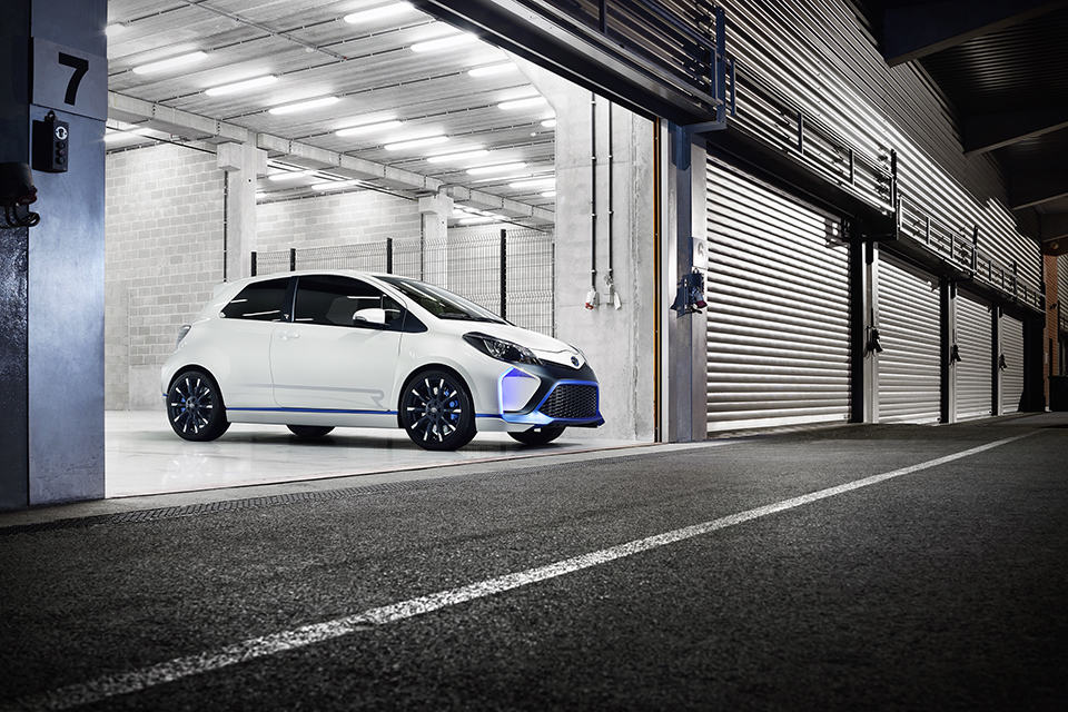 other features include Yaris Hybrid specific LED lights, a quick opening fuel cap for quick refuel, a roof-mounted spoiler, a redesigned rear bumper with integral large diffuser and a racing cockpit consisting of dual tone leather and Alcantara Recaro bucket seats, Alcantara-wrapped sports steering wheel with racing-inspired push button, and also a race-style shift lever, just like those you would find on track-prep cars. the Toyota Yaris Hybrid-R Concept certainly offers an exciting proposition to any motoring enthusiasts and a promise of going green and clean not necessarily means a slower and dull ride, and it also put forward the idea that such technology and power could be made available to an “everyday” car and not some exotic ride.