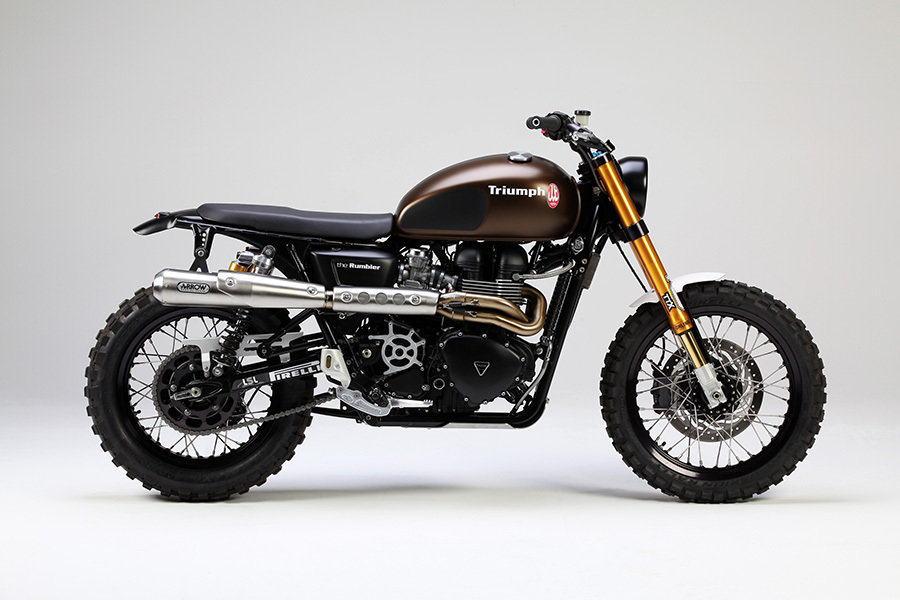 still can’t forget the lovely Triumph Scrambler? well, i guess we all have to move on and let go of the past, so instead of staring at the washed out photo of your Triumph Scrambler, why not own a modern rendition of it? and the bike that will fill that void in your life is the Triumph Tridays Rumbler. put together by the folks at Tridays, this one-off classic two-wheeler sports Öhlins spring elements, thick Pirelli studded rubbers, a Magura-Super-Moto braking system, Roadster handlebars, and a beautiful metallic brown paint job on its gas tank. i don’t mean to exaggerate but the Triumph Tridays Rumbler is quite a sight to behold. don’t believe? just check out the images in the gallery after the break and witness it for yourself. want one? then go ahead and get in touch with the folks at Tridays and hear from the horses mouth on how you can get your hands on one. remember, it is one off – so we are not really sure if you will ever get one. sorry folks.