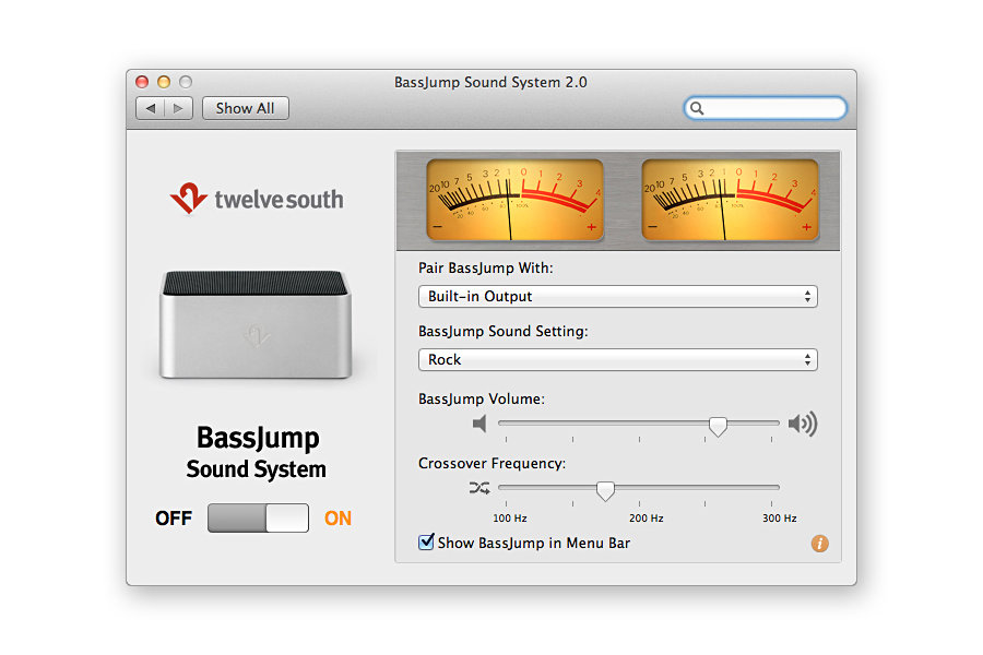 the remastered software now boast compatibility with iMac and Apple Thunderbolt Display speakers, as well as third party USB and headphone-connected speakers, and it now offers eight more decibels of sound then its predecessor. apart from being functional, the software user interface also offers quite an eye candy to the users and the aesthetic appeal of the subwoofer hardware is undeniably alluring. oh, there is one more thing. the BassJump hardware is the same as the original, so if you have the original BassJump, you can get all the BassJump 2 features and improvements for free by downloading and installing the new BassJump 2 Software available on Twelve South website.