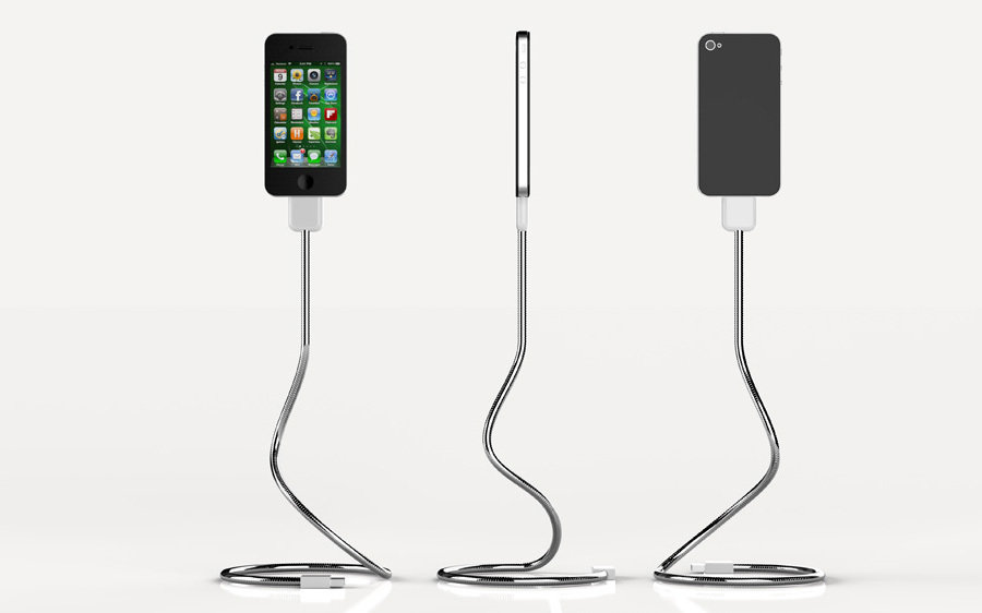 most folks are quite happy with the standard issue Apple 30-pin connector cable when charging and syncing their iPhones. it is pretty hassle free, really and we should have no complain about it, except for when you are alerted of an incoming message. the ritual for this includes picking up your iPhone from the desk, unlock it and navigate to your message app. doesn’t sounds like a huge chore but apparently, some found it to be nuisance (we, included), especially the picking up part of things. well, if you belong to the latter category, then Une Bobine Cable is a must have accessory for your iPhone. it combines the functionality of a charging/sync cable with a dock or stand. obviously, it will save you a whole lot of desk space and looks way sleeker then the stock cable. described as a “flexible and eclectic stand”, it resembles a cable but has both the firmness and flexibility to flex to whatever position you desire and hold up. now, there you have it, a cable that can hold up on its own and it is definitely more portable then a dock or stand. the Une Bobine Cable is a project on Kickstarter and it can be yours if you make a pledge of $25 or more.