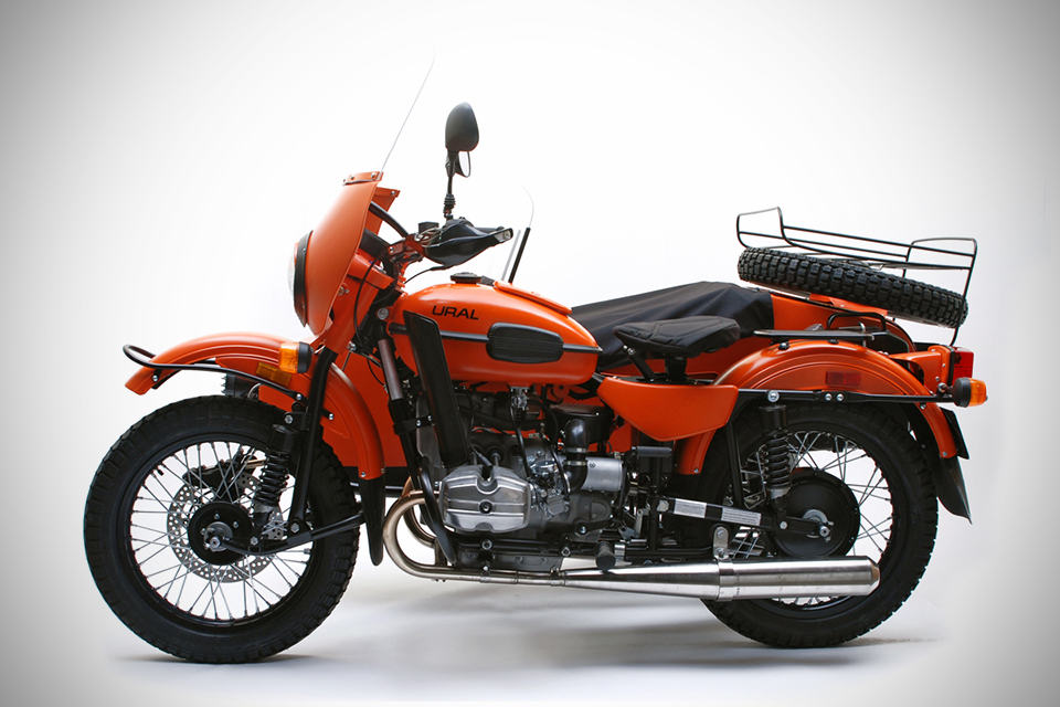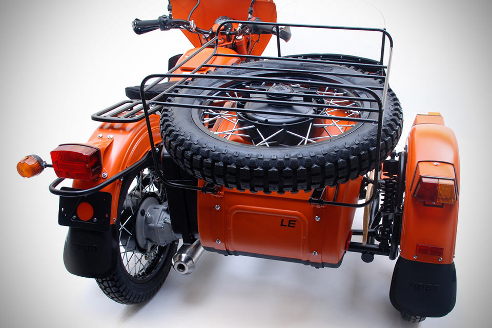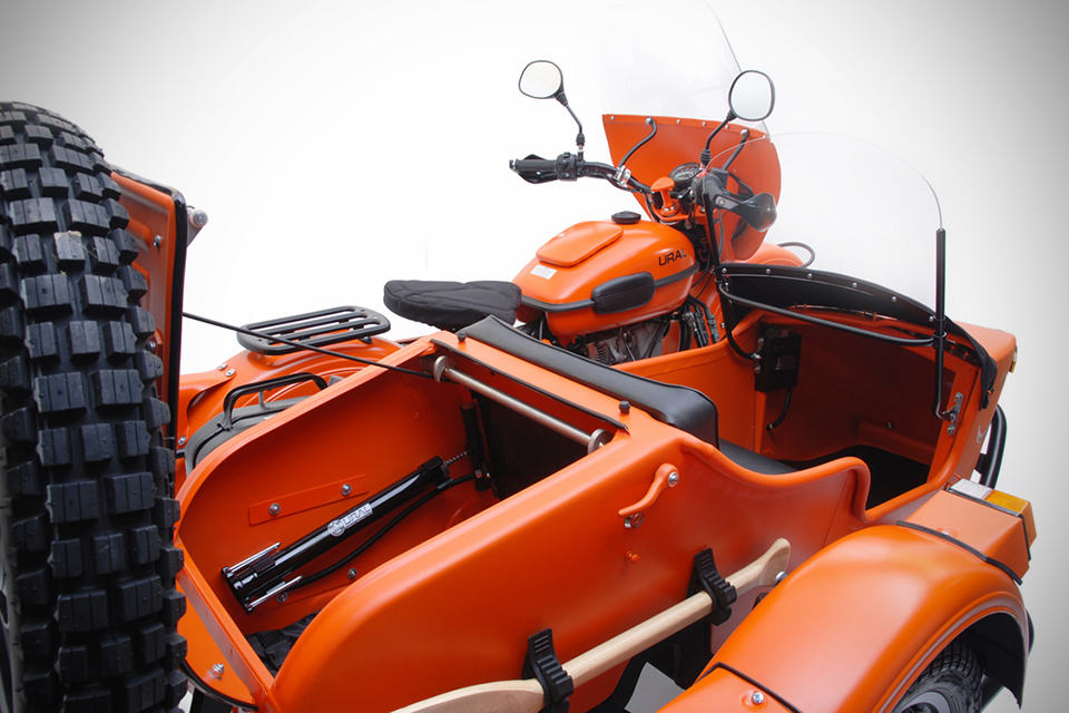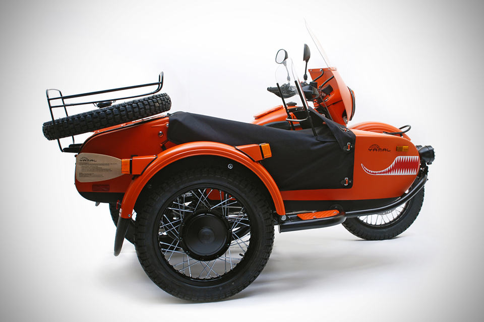 unlike regular motorcycles, sidecars are not a common sight but if it happens to be, then we think the Ural Yamal Limited Edition Sidecar Motorcycle should help you in standing out from the sidecar community and with only 50 units destined for the U.S., chances of you meeting another of the same kind is as slim as seeing a person using a 40k iPhone. drawing its inspiration from the Russian icebreaker of the same name, the Ural Yamal is build tough with features like weatherproof bottom and lower section of the sidecar, plus details like handle guards and fenders for the extra protection. the Yamal is set to be attention grabber with its striking flat orange (power coated, no less) finish with black accents, adorned with the unmissable, ferocious teeth graphics. powered by a 749cc air-cooled 4-stroke boxer engine that makes 40 ponies with 51Nm (38 ft-lbs) of torque, mated to a 5-speed transmission (including reverse), the Yamal could easily ease itself to top speed of 100 km/h (62 mph). other highlights include Brembo full floating front brake, Sachs suspensions, 19-inch wire spoke wheels with knobby tires, rider fairing and passenger windshield, front mounted fog lights, knobby spare, LE badging, on-demand 2WD and oh, it comes with an oar which should come handy in time of dire situation such as, well… we really don’t know but it is there and we are sure you will find a use for it when the situation arises. the Ural Yamal Limited Edition Sidecar Motorcycle comes with $14,250 price tag. gun past the jump for a few more larger look.