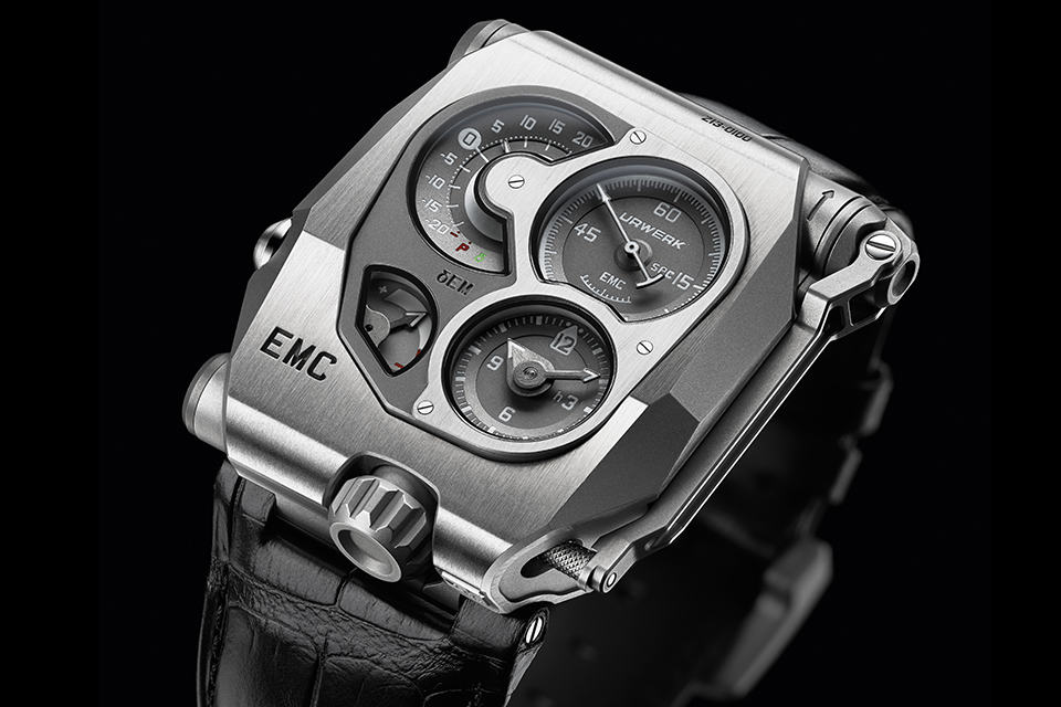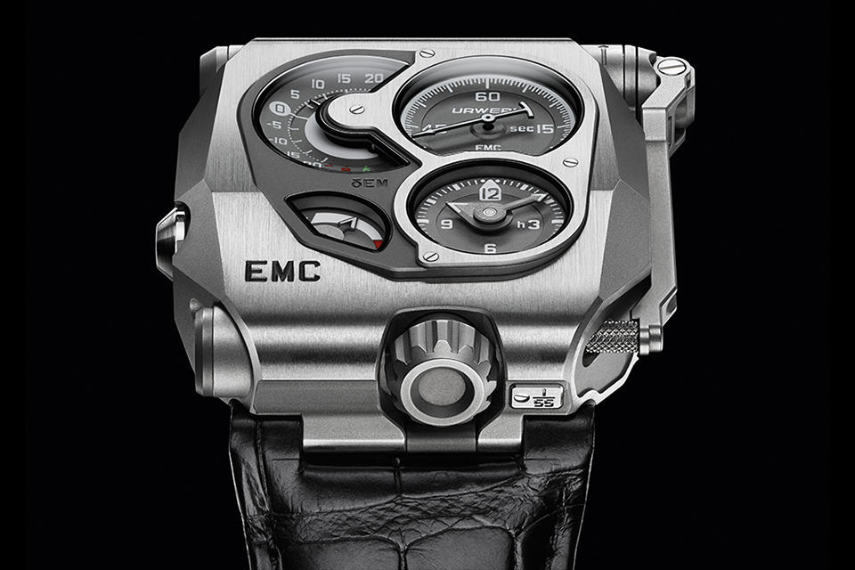 even in this digital age, mechanical watch movements still represent the pinnacle of watch craftsmanship and thus, it is only natural that mechanical movements are the preferred movement for any watch connoisseur. however, despite the technological advancement in watchmaking, mechanical watch still suffers from the inherent imperfection in timing as the watch loses power – a problem that this luxurious and majestic URWERK EMC watch aims to eliminate. on the personal level, i wouldn’t be too overly obsessed if my BR01 goes a few seconds off, but for those who live life with the motto of “every second counts”, i’m sure EMC will be the watch to look forward to. nested within the satin finish titanium and steel case is both a URWEK-developed mechanical movement and a clever circuitry that runs independently of the watch movement for keeping track of the movement’s accuracy. to better understand what exactly EMC has to offer is to think of it as a mechanical watch with a Witschi-like measuring instrument incorporated into it.