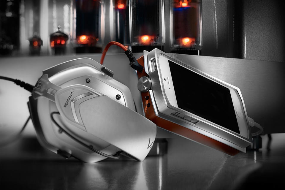 with the new Android OS supporting USB digital audio output, on-the-go audiophiles might want to squeeze every bit of that digital bliss out from their Android devices and the V-MODA VAMP VERZA Portable Amplifier is the device that can help you out. in fact, the VAMP VERZA, which happens to work with iOS devices as well, does more than just amping out your digital tunes, it is also a Digital-to-Analog Converter (DAC) for extracting pure digital output from your smartphone and computer and it has a built-in 2,200 mAh lithium-ion battery that not only powers the portable amplifier, but also doubles as a juice pack for your USB-powered devices. packed into this futuristic-looking device are audiophile-grade components from Burr Brown and AKM that will ensure you will be getting nothing but high-end audio reproduction from your computer or mobile devices. it has not one, but two dedicated DAC built into it with one DAC for handling digital audio of your computer and Android devices, and the other, for iOS devices. on the amp side, you have 150mW and 130mW amplifications for the USB audio and iOS devices, respectively.